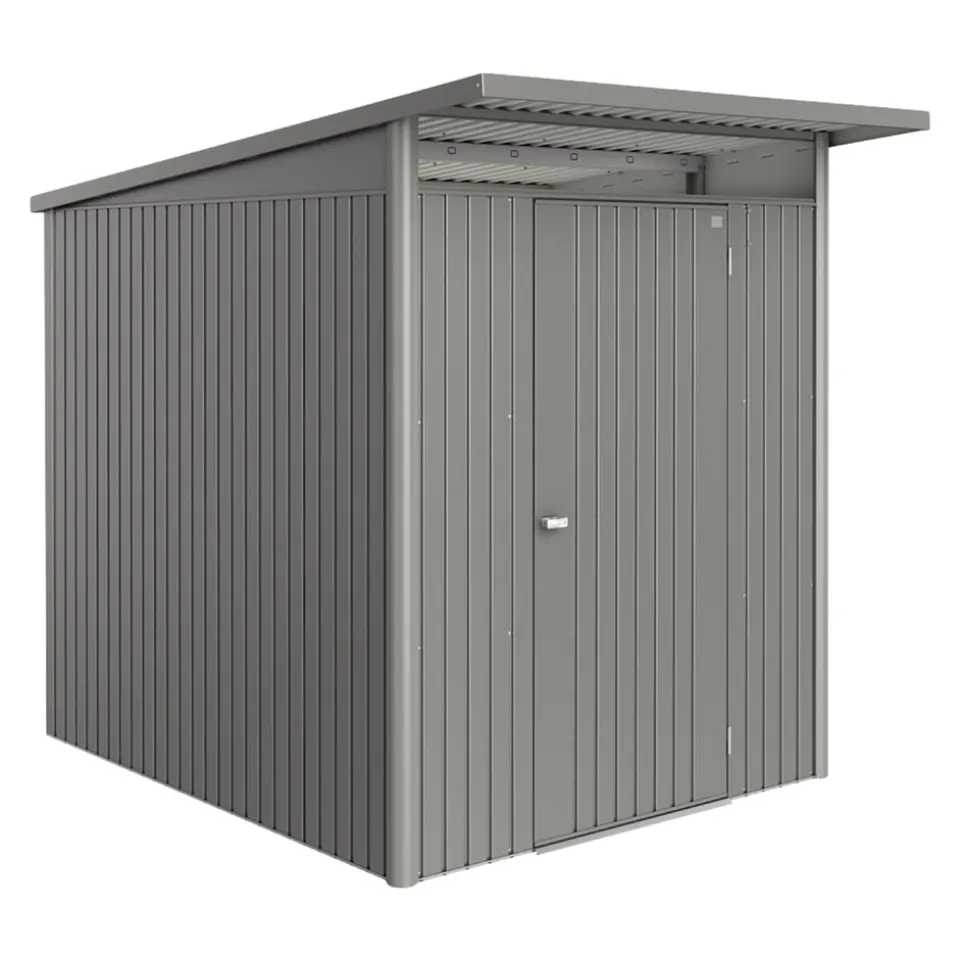 Chaos im Garten? Nicht mit diesem Geräteschrank. Hinter der robusten Fassade aus Stahlblech finden Gartenwerkzeug, Grill und andere Outdoor-Utensilien einen sicheren und trockenen Platz. Der regenfeste Schrank ist mit einem abschliessbaren Drehgriff-Zylinderschloss ausgestattet. Inkl. Reserveschlüssel. In verschiedenen Grössen und Farben erhältlich.Bitte beachte: Bei einer Geräteschrank-Bestellung inklusive Montage ist ein Bodenrahmen zwingend. Er verleiht dem Geräteschrank auch ohne Betonfundament die notwendige Stabilität. Die mitgelieferten Bodenanker tragen zur Sturmsicherheit bei. Vier Kunststoff-Eckverbindungen ermöglichen die exakte Montage. Der Alu-Bodenrahmen hat einen Querschnitt von 40 x 40 mm. Du findest den passenden Bodenrahmen in unserem Shop unter der Artikelnummer: 1200545.Die Bodenplatte wird bei der Montage empfohlen. Hochwertiger Alu-Riffelblechboden, elegant und funktionell. Zur optimalen Verlegung der Alu-Bodenplatten ist der Alu-Bodenrahmen erforderlich. Beachte bitte, dass die Alu-Bodenplatte mit einer Schüttung oder XPS-Hartschaumplatten in einer Stärke von ca. 2-3 cm zu unterfüttern ist (nicht im Lieferumfang enthalten). Du findest die passende Bodenplatte in unserem Shop unter der Artikelnummer: 1200550.Unser Montageservice braucht im Idealfall einen ebenen Untergrund (Betonfundament) für die Platzierung der Biohort Produkte, hierfür braucht es eventuell eine Baubewilligung. Ob du eine Baubewilligung benötigst, erfährst du beim Bauamt der Gemeinde, wo sich das Grundstück befindet. Bitte erkundige dich frühzeitig.Bitte beachten Sie, dass bei einer Heimlieferung ohne Montageservice die Lieferung lediglich bis zur Bordsteinkante erfolgt.