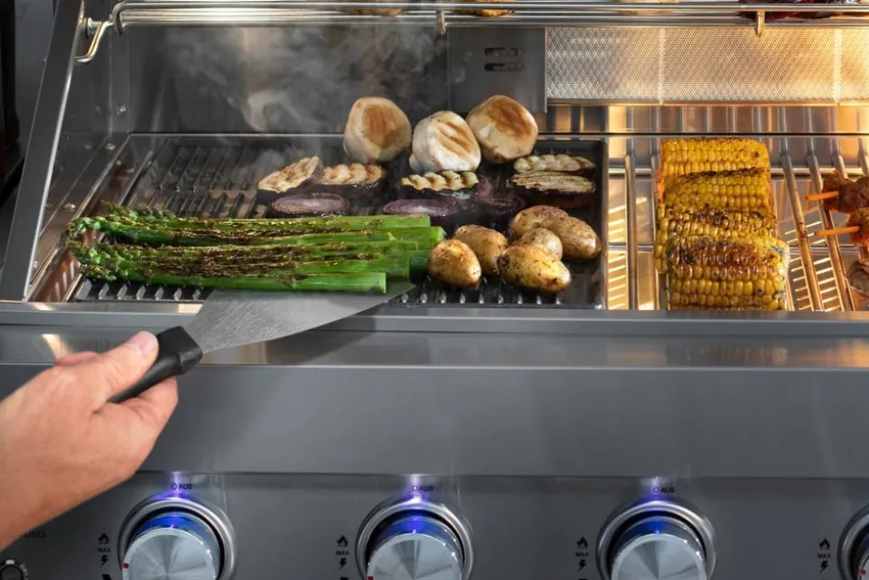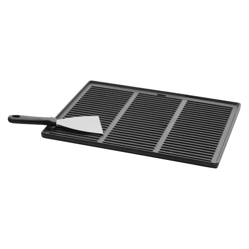 Die Grillplatte GRENADA ist die perfekte Ergänzung für deinen Gasgrill. Die Platte lässt sich beidseitig nutzen: So eignet sich die glatte Oberfläche hervorragend für die Zubereitung von kleinstückigem Grillgut, während die gerippte Seite Steaks, Bratwürsten und Gemüse zu einem knusprigen Finish verhilft. Aus hochwertigem Gusseisen produziert, punktet die Grillplatte GRENADA mit einer langen Lebensdauer. Sie wird zusammen mit einem praktischen Grillspachtel geliefert, mit dem du deine Grillspezialitäten mühelos wendest und servierst. Für alle Gasgrills geeignet.