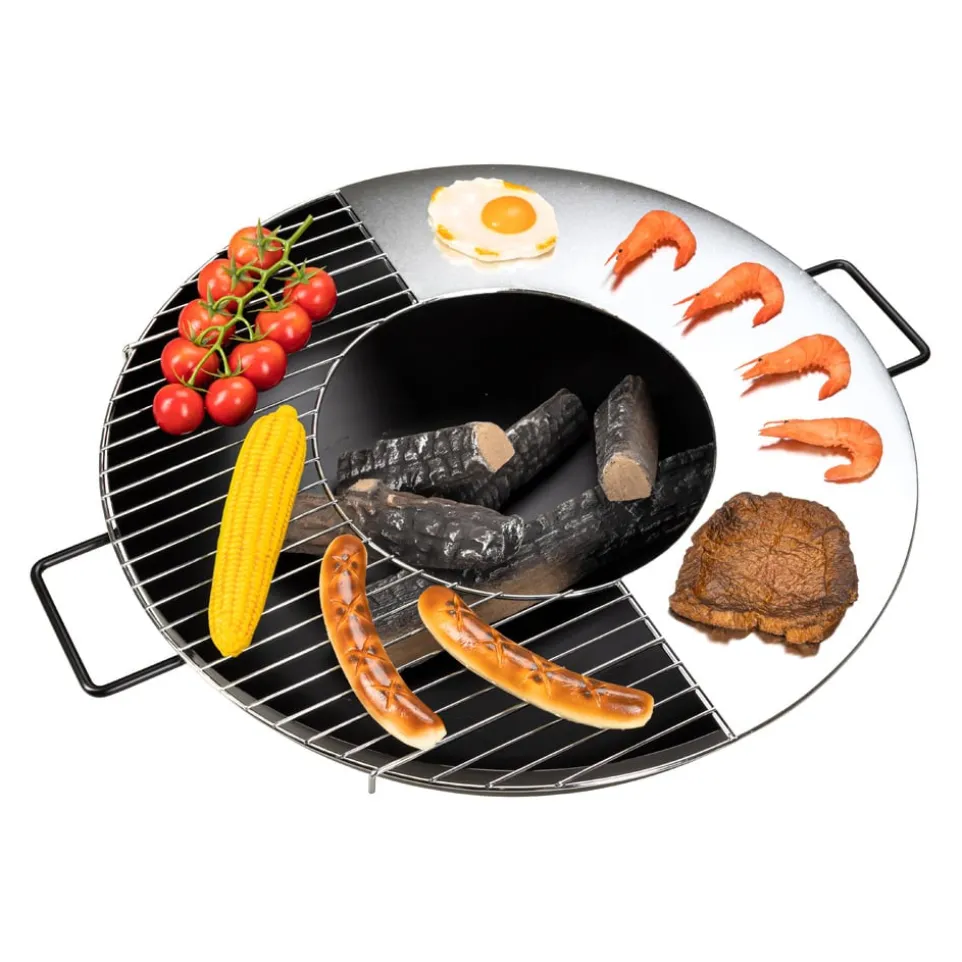Die Grillplatte Kombi von Nouvel verwandelt deine Feuerschale mit einem Durchmesser von 55 cm in ein vielseitiges Grillgerät. Aus robustem Stahl gefertigt und verchromt, vereint sie Langlebigkeit und stilvolles Design. Die Ausstattung umfasst sowohl einen Grillrost als auch eine Plancha-Platte, sodass du flexibel verschiedene Gerichte zubereiten kannst. Ob saftige Steaks oder knackiges Gemüse, die Grillplatte bietet dir die Möglichkeit, eine Vielzahl von Speisen unkompliziert zuzubereiten. Mit dieser Kombination erreichst du gleichmässige Hitzeverteilung und optimale Grillergebnisse. Mache deine nächste Grillparty zu einem besonderen Erlebnis mit der hochwertigen Grillplatte Kombi.
