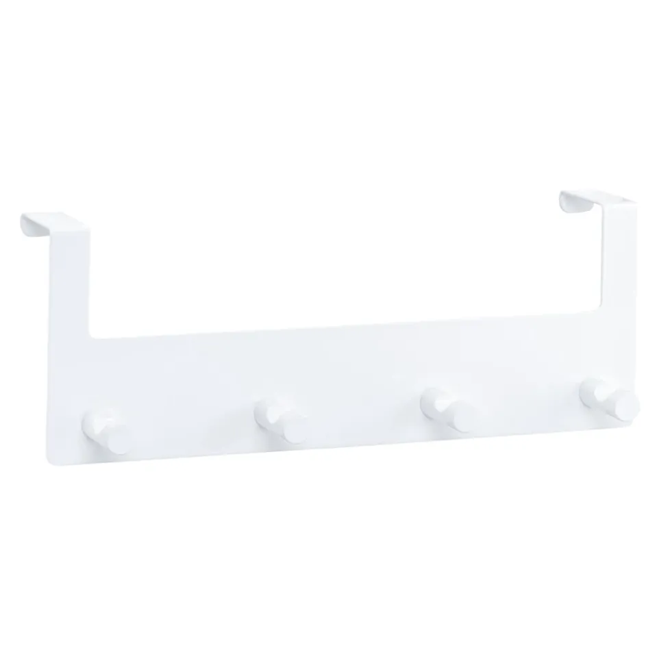 An die Tür damit. Diese Türgarderobe kommt ganz ohne Schrauben und Bohrer aus: Hängen Sie sie einfach oben an der Türe ein. Ein Produkt aus Stahl im modernen Design. Mit 4 praktischen Haken, auch in Schwarz erhältlich.
