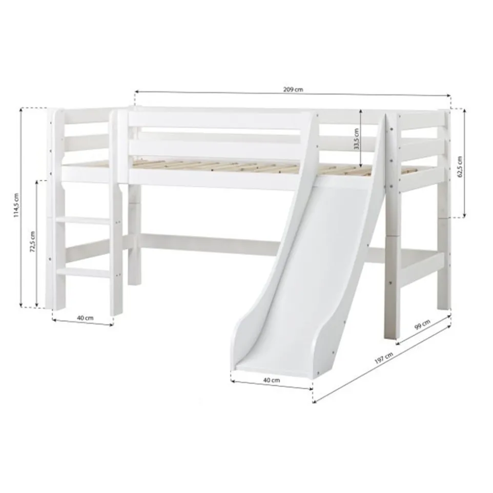 | Besonderheiten | Zum Spiel- oder Etagenbett umbaubar, inklusive Leiter, gerade, inklusive Rutsche, umweltfreundliche wasserbasierende Lacke |