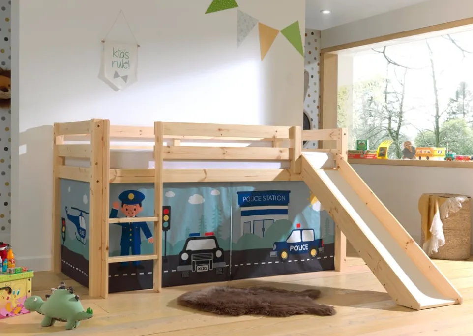 Das Halbhochbett Pino von MID.YOU beeindruckt durch seine robuste Bauweise aus massivem Kiefernholz. Dieses Bett bietet nicht nur Stabilität, sondern auch ein warmes, natürliches Ambiente in deinem Kinderzimmer. Die hohe Holzqualität garantiert Langlebigkeit und Sicherheit für dein Kind. Dank der cleveren Halbhoch-Konstruktion bleibt unter dem Bett noch genügend Platz für zusätzlichen Stauraum oder eine gemütliche Spielecke. Durch die Verwendung von massivem Holz erhält das Bett eine besondere Wertigkeit und Ästhetik. Mit dem Halbhochbett Pino schaffst du ein gemütliches und funktionales Highlight im Kinderzimmer.