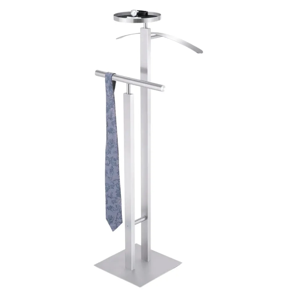 Der Herrendiener Atacio von ZACK besticht durch sein elegantes Design aus hochwertigem Edelstahl. Dank des matt gebürsteten Oberflächenfinishs fügt er sich stilvoll in jedes Ambiente ein. Der Atacio ist nicht nur ein praktischer Helfer, sondern auch ein ästhetisches Highlight für dein Schlafzimmer oder Ankleidezimmer. Gefertigt aus robustem Metall, bietet dieser Herrendiener Stabilität und Langlebigkeit. Die klare Linienführung und das zeitlose Design unterstreichen seinen modernen Charakter. Mit dem Herrendiener Atacio setzt du auf Qualität und Funktionalität – ein unverzichtbares Accessoire für den stilbewussten Mann.