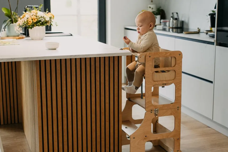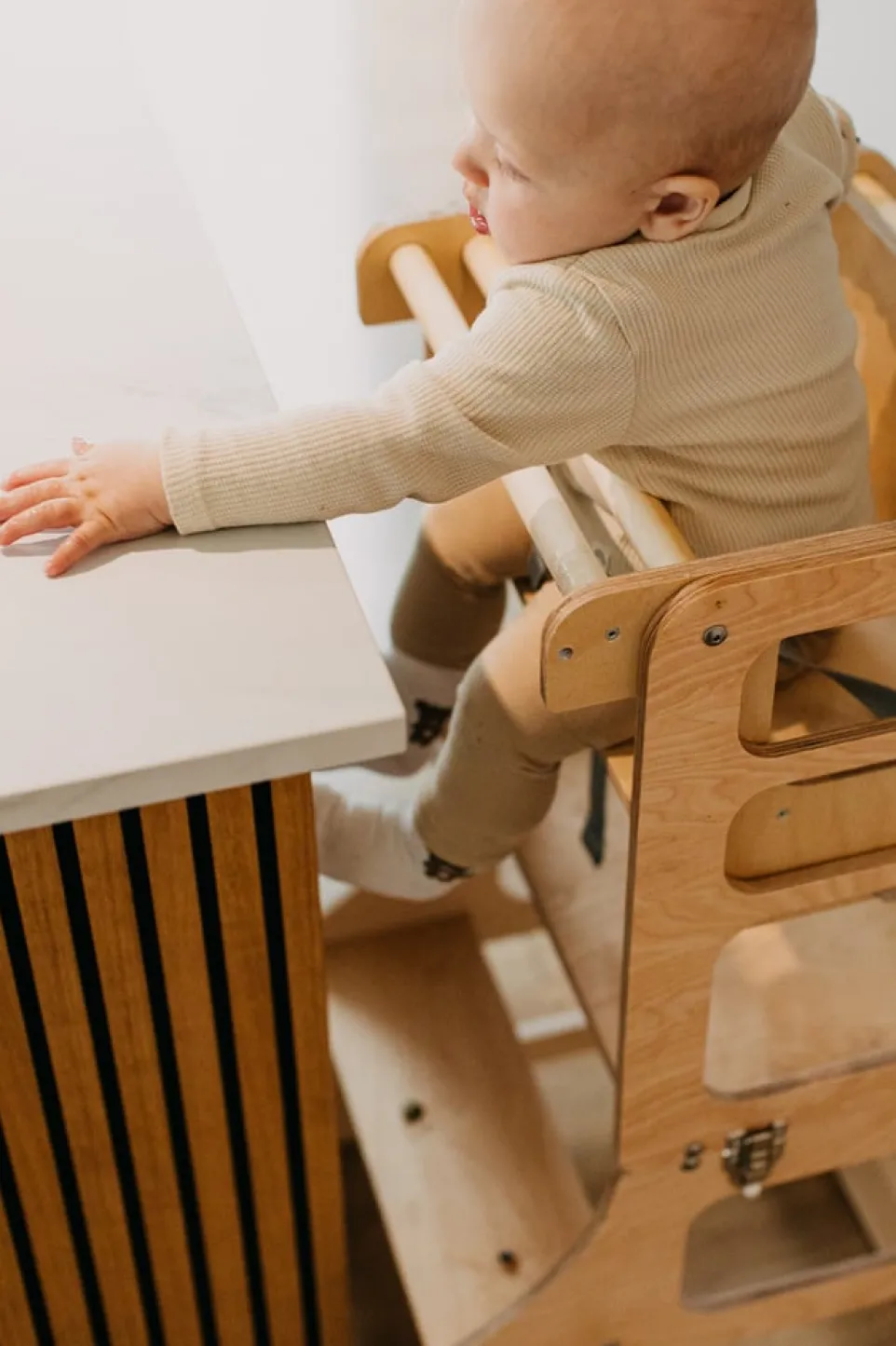 Eleganz und Funktionalität findest du im Hochstuhl Gauja von Duck Woodworks. Hergestellt aus hochwertigem Holzwerkstoff der Birke, bietet dieser Aufsatz für den Küchenturm Gauja eine stabile und langlebige Sitzgelegenheit. Die natürliche Holzstruktur verleiht deinem Zuhause einen Hauch von Natur und Wärme. Ideal für Familien, die nach einer praktischen und sicheren Lösung suchen, um die Kleinen auf Augenhöhe am Küchentisch teilhaben zu lassen. Duck Woodworks kombiniert traditionelles Handwerk mit modernem Design, um ein Produkt zu schaffen, das sowohl deinem ästhetischen als auch deinem funktionalen Anspruch gerecht wird.
