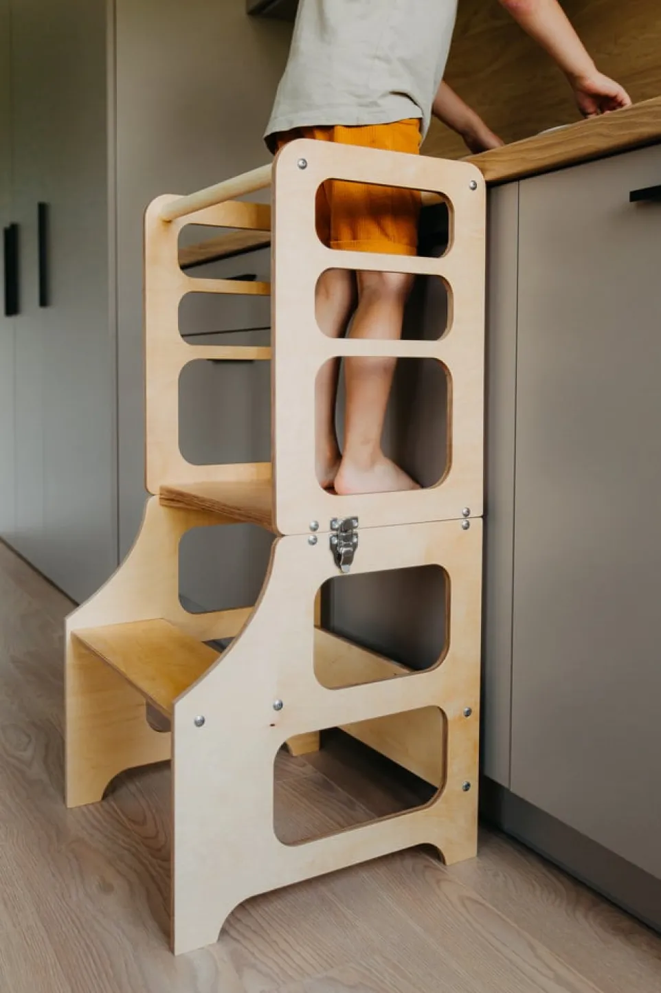 Vielseitigkeit trifft auf Funktionalität im Hochstuhl Gauja von Duck Woodworks. Dieser innovative Küchenturm lässt sich mühelos in einen Stuhl, Hocker oder Tisch verwandeln und passt sich so deinen Bedürfnissen an. Gefertigt aus hochwertigem Birkenholzwerkstoff, bietet er eine robuste und langlebige Lösung für verschiedene Alltagssituationen. Die natürliche Holzoptik fügt sich nahtlos in jede Küche oder Wohnumgebung ein und sorgt für eine angenehme Atmosphäre. Egal ob du ihn als Hochstuhl für die Kleinen oder als praktischen Tisch nutzen möchtest, der Gauja überzeugt durch seine Wandelbarkeit und Qualität. Ideal für alle, die Flexibilität schätzen.