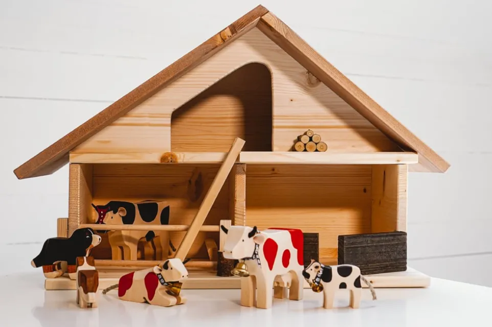 Handgefertigt aus massiver Fichte, bietet das Holzspielzeug Farm von TRAUFFER ein authentisches Spielerlebnis für Kinder. Es wird ausschliesslich aus 100% Schweizer Holz gefertigt und steht für Qualität und Tradition. Jedes Detail ist mit Sorgfalt handbemalt, was jedes Stück zu einem Unikat macht. Die Verwendung von FSC®-zertifiziertem Holz garantiert, dass das Spielzeug nachhaltig produziert wird. Zusätzlich trägt es das Label Schweizer Holz, was die regionale Herkunft unterstreicht. Dieses Spielzeug vereint Handwerkskunst und Umweltbewusstsein, und wird kleinen Entdeckern viel Freude bereiten.