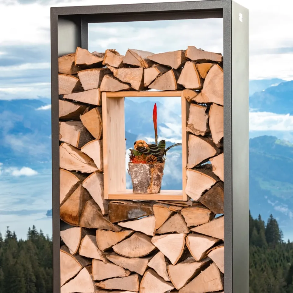 Für das gewisse Etwas: Mit dem Kaminholzregal von Nouvel setzen Sie einen tollen optischen Akzent – sei es im Wohnzimmer oder im Garten. In verschiedenen Grössen und Ausführungen erhältlich.