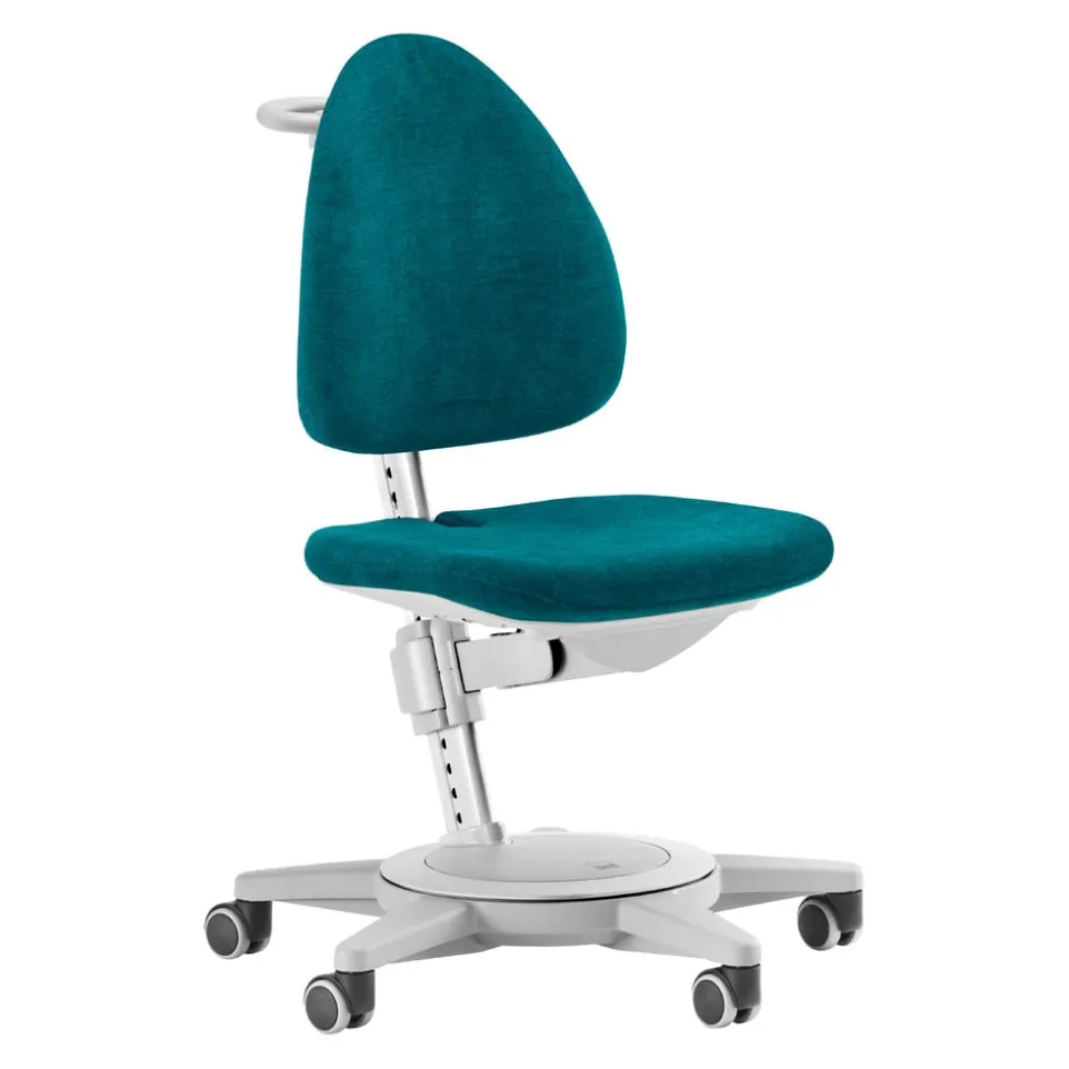 Mit MAXIMO rollt’s im Kinderzimmer rund. Sitztiefe, -höhe und Rückenlehne des Kinder- und Jugenddrehstuhls sind kinderleicht und unabhängig voneinander verstellbar, und er passt sich so dem Wachstum seines Besitzers an (höhenverstellbar von 28 bis 54cm, belastbar bis 80kg). Die Sitzfläche ist zudem mit Stossdämpfern für eine bessere Sitzdynamik und mehr Komfort ausgestattet. Ein fünfarmiges, extrabreites Fusskreuz mit gebremsten Rollen für harte und weiche Böden sorgt für Stabilität und Sicherheit. Das Gestell gibt’s übrigens wahlweise in Weiss oder Grau, dazu sind verschiedene Stofffarben erhältlich. Die Bezüge sind abnehm- und austauschbar, waschbar, hochstrapazierfähig und einfach zu reinigen. Doch der Clou ist ein Geheimfach im Sitz, in dem vielleicht die ersten nie abgeschickten Liebesbriefe Unterschlupf finden. Der Kinderbürostuhl ist ÖKO-TEX®-Standard-100 zertifiziert und optional mit Gleitern erhältlich.
