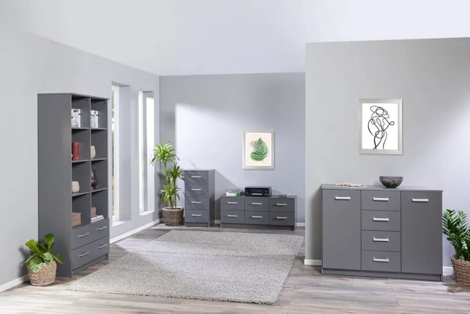 Mit der Kommode Elenzio-506 von MID.YOU erhältst du ein stilvolles Möbelstück, das durch seine klare Linienführung und zeitlose Eleganz besticht. Diese Kommode besteht aus hochwertigem Holzwerkstoff und bietet mit ihren drei geräumigen Schubladen ausreichend Stauraum für all deine Habseligkeiten. Ob im Schlafzimmer, Wohnzimmer oder Flur – die Kommode Elenzio-506 fügt sich nahtlos in jedes Ambiente ein und sorgt für Ordnung und Übersicht. Dank der robusten Verarbeitung und des durchdachten Designs wirst du lange Freude an diesem Möbelstück haben. Entdecke die Vielseitigkeit und den praktischen Nutzen dieser eleganten Kommode.