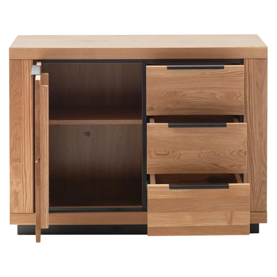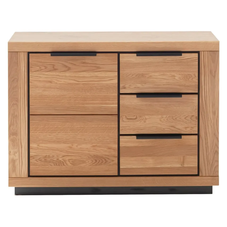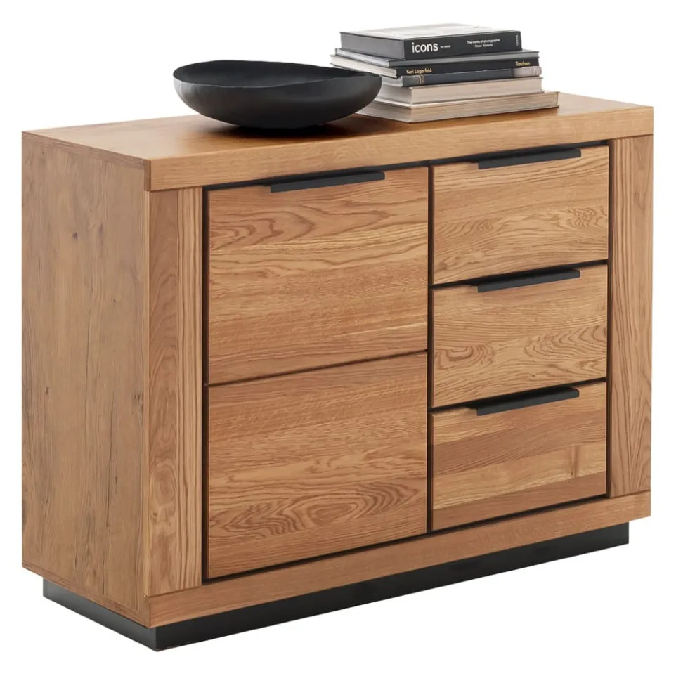 Mit massiver Wildeiche setzt die Kommode Greno von MID.YOU ein starkes Statement in deinem Zuhause. Dieses elegante Möbelstück bringt natürliche Wärme und zeitlose Eleganz in jeden Raum. Die Kommode verfügt über eine Tür und drei Schubladen, die praktischen Stauraum für deine Habseligkeiten bieten. Ob im Schlafzimmer, Wohnzimmer oder Flur, die Kommode Greno fügt sich harmonisch in verschiedene Wohnstile ein. Die hochwertige Verarbeitung und die Verwendung von massivem Holz garantieren Langlebigkeit und Stabilität. Du erhältst mit der Kommode Greno ein funktionales und stilvolles Möbelstück, das deinen Wohnraum bereichert.