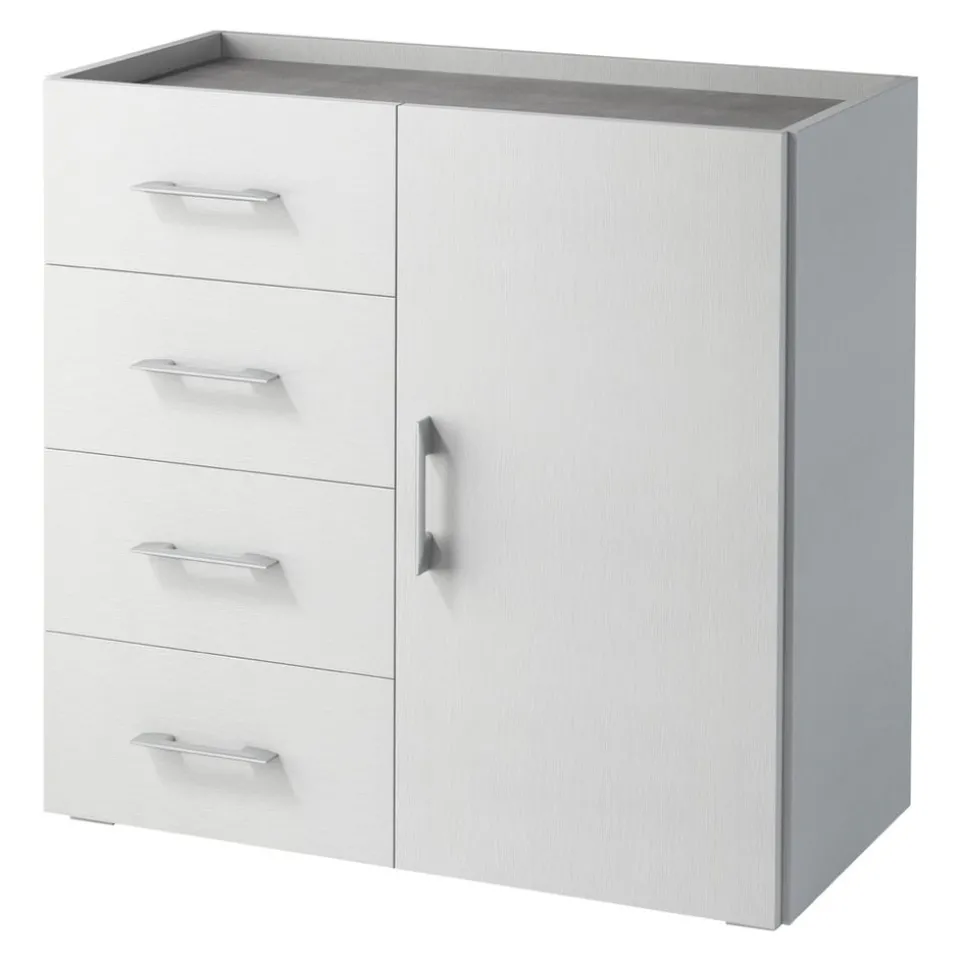 Mit der Kommode Living von Sikelia erhältst du ein stilvolles und praktisches Möbelstück, das durch erstklassige Holzqualität aus Spanplatte überzeugt. Diese Kommode bietet nicht nur eine Tür, sondern auch vier geräumige Schubladen, die viel Stauraum schaffen. Das verwendete Material ist hochwertiger Holzwerkstoff, der für Langlebigkeit und Stabilität sorgt. Ein besonderes Highlight: Die Kommode ist FSC®-Mix zertifiziert, was für nachhaltige und verantwortungsvolle Forstwirtschaft steht. Die Kommode Living ist die ideale Wahl für alle, die Wert auf Qualität und Design legen. Hol dir dieses zeitlose Stück in dein Zuhause!