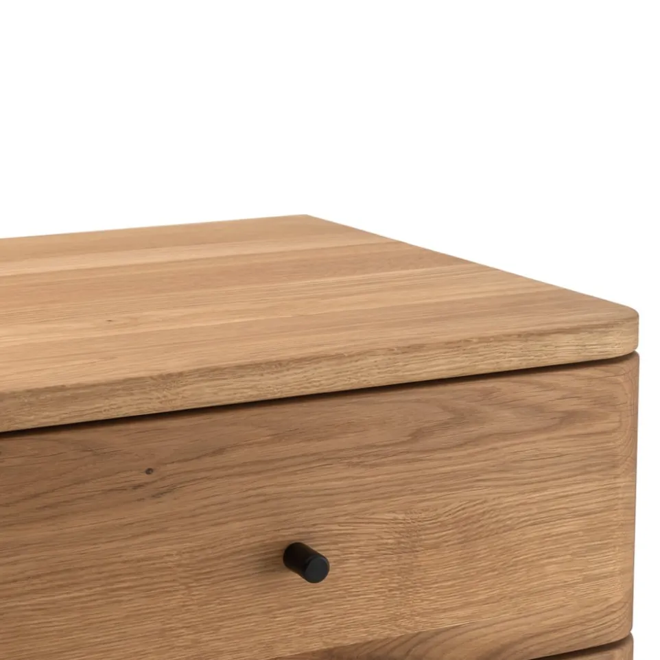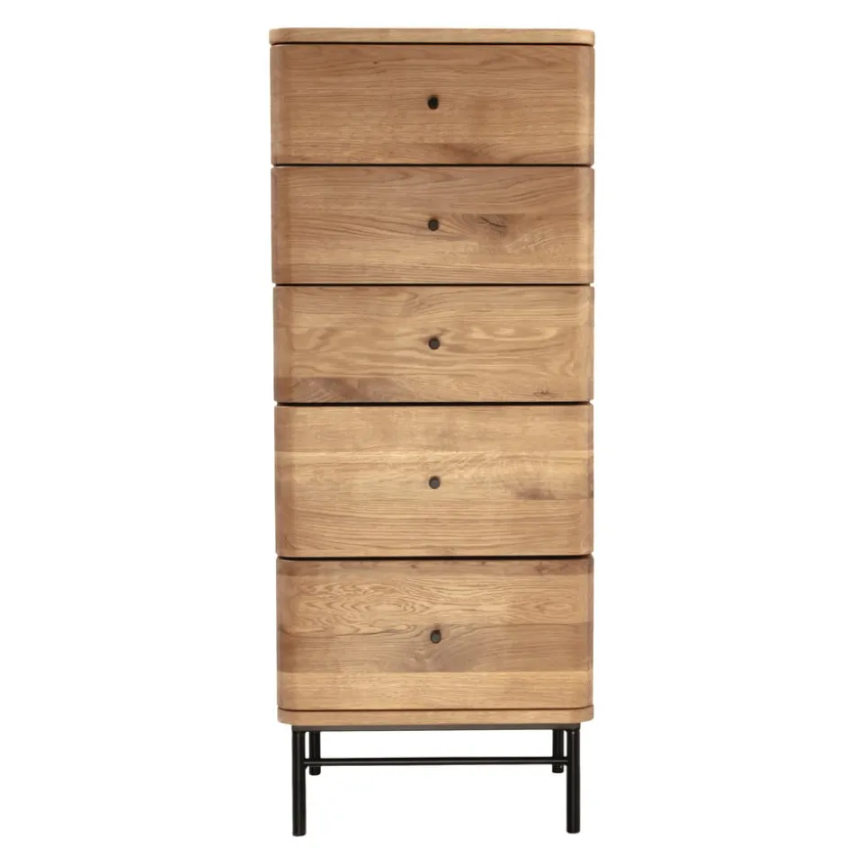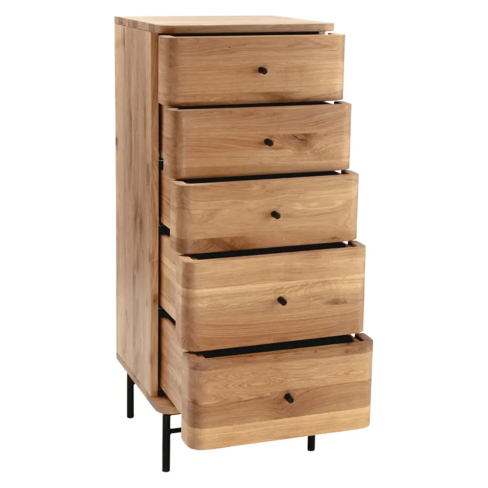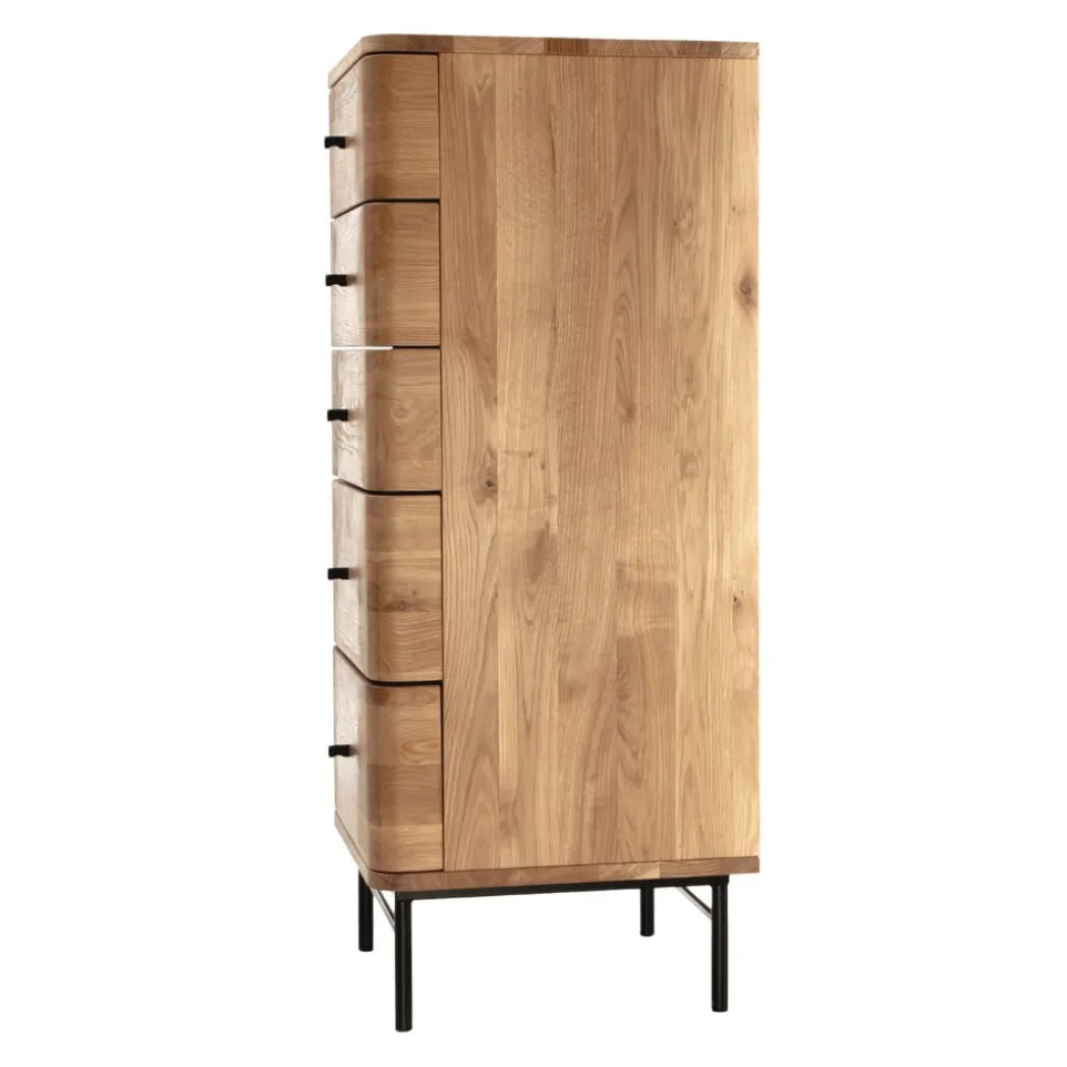 Du wirst diesen Schubladenschrank lieben. Die Kommode steht in Johann-Jakob-Markenqualität für schönes Design und ein einzigartiges Wohnerlebnis. Fünf Schubladen unterstützen dich dabei, die Ordnung in deinen vier Wänden zu bewahren. Der Schubladenschrank in einem Eiche-Farbton steht fest auf stilvollen schwarzen Füssen aus Metall. Diese Kommode ist ein echter Gewinn für alle, die besonderen Wert auf ästhetische Möblierung legen.