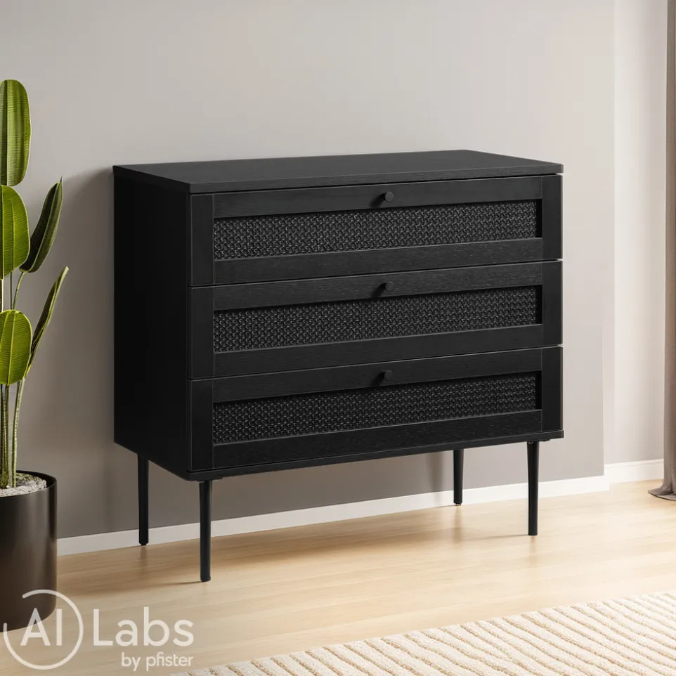Die Kommode Pensacola von Lomoco besticht durch eine stilvolle Kombination aus Holzwerkstoff und Rattan-Front. Mit ihren drei geräumigen Schubladen bietet sie ausreichend Platz für deine Habseligkeiten und bringt gleichzeitig eine warme, natürliche Note in dein Zuhause. Das elegante Design der Kommode Pensacola fügt sich harmonisch in jedes Raumkonzept ein und sorgt für eine angenehme Atmosphäre. Die hochwertige Verarbeitung und das edle Material machen dieses Möbelstück zu einem langlebigen Begleiter. Perfekt für das Schlafzimmer, den Flur oder das Wohnzimmer – die Kommode Pensacola verbindet Funktionalität mit Ästhetik auf höchstem Niveau.