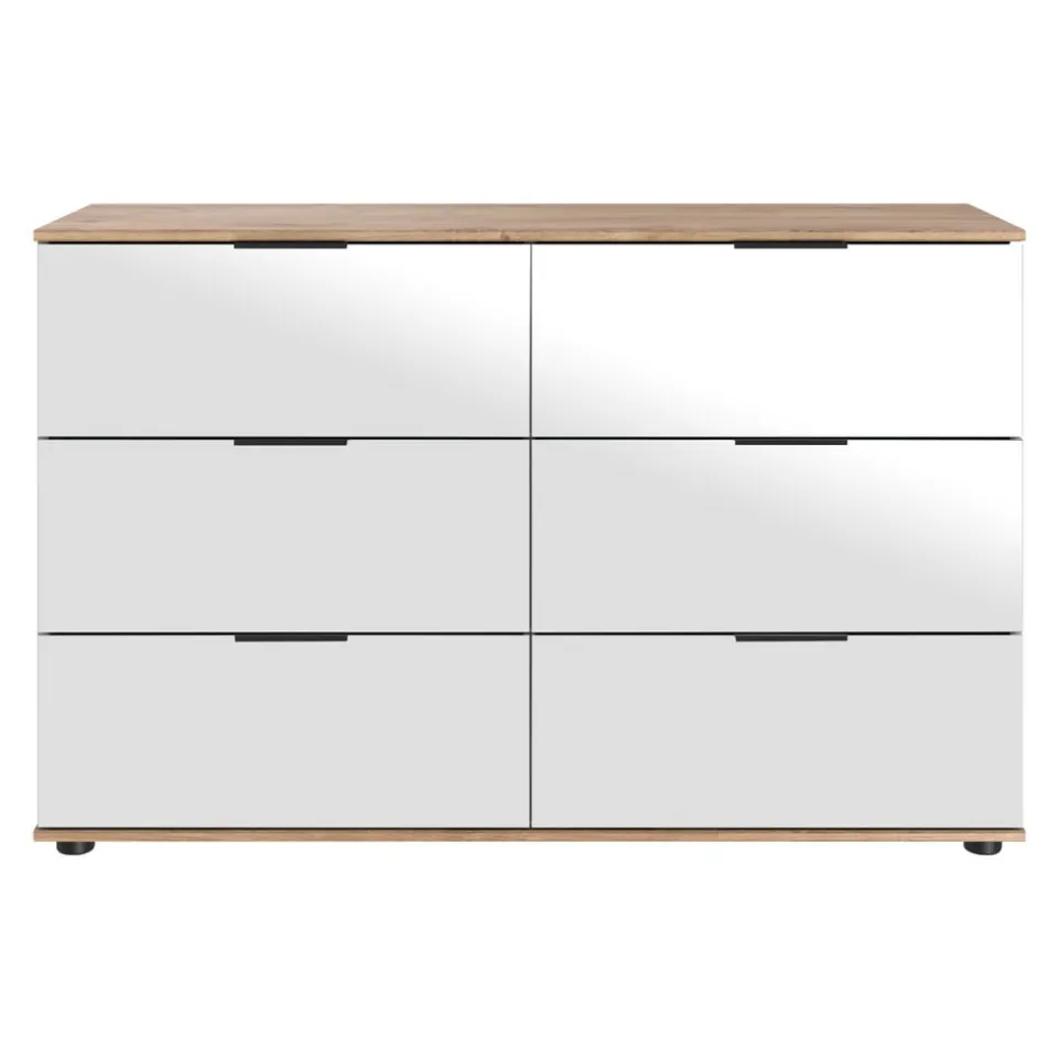 Die Kommode Saigon von MID.YOU besticht durch ihre sechs grosszügigen Schubladen und die elegante Kombination von Holzwerkstoff und Spiegelglas. Die Fronten aus Spiegelglas verleihen deinem Raum eine moderne und stilvolle Atmosphäre. Der hochwertige Holzwerkstoff sorgt für eine robuste und langlebige Konstruktion. Diese Kommode bietet dir nicht nur viel Stauraum, sondern auch ein zeitloses Design, das in jedem Raum ein Blickfang ist. Egal ob im Schlafzimmer oder im Wohnzimmer, die Kommode Saigon fügt sich nahtlos in dein Interieur ein und schafft Ordnung mit Stil.