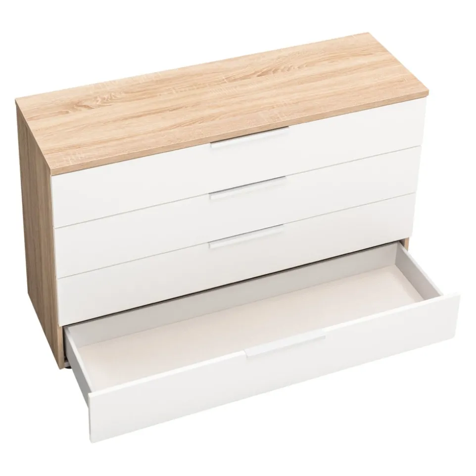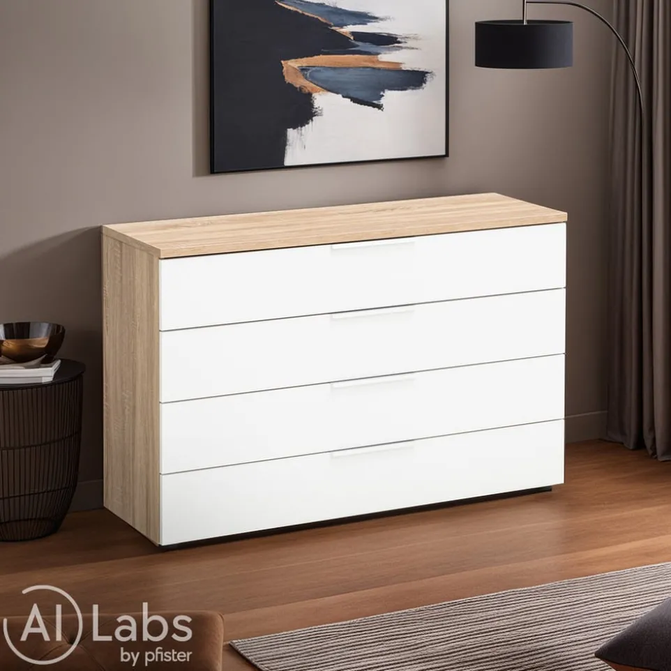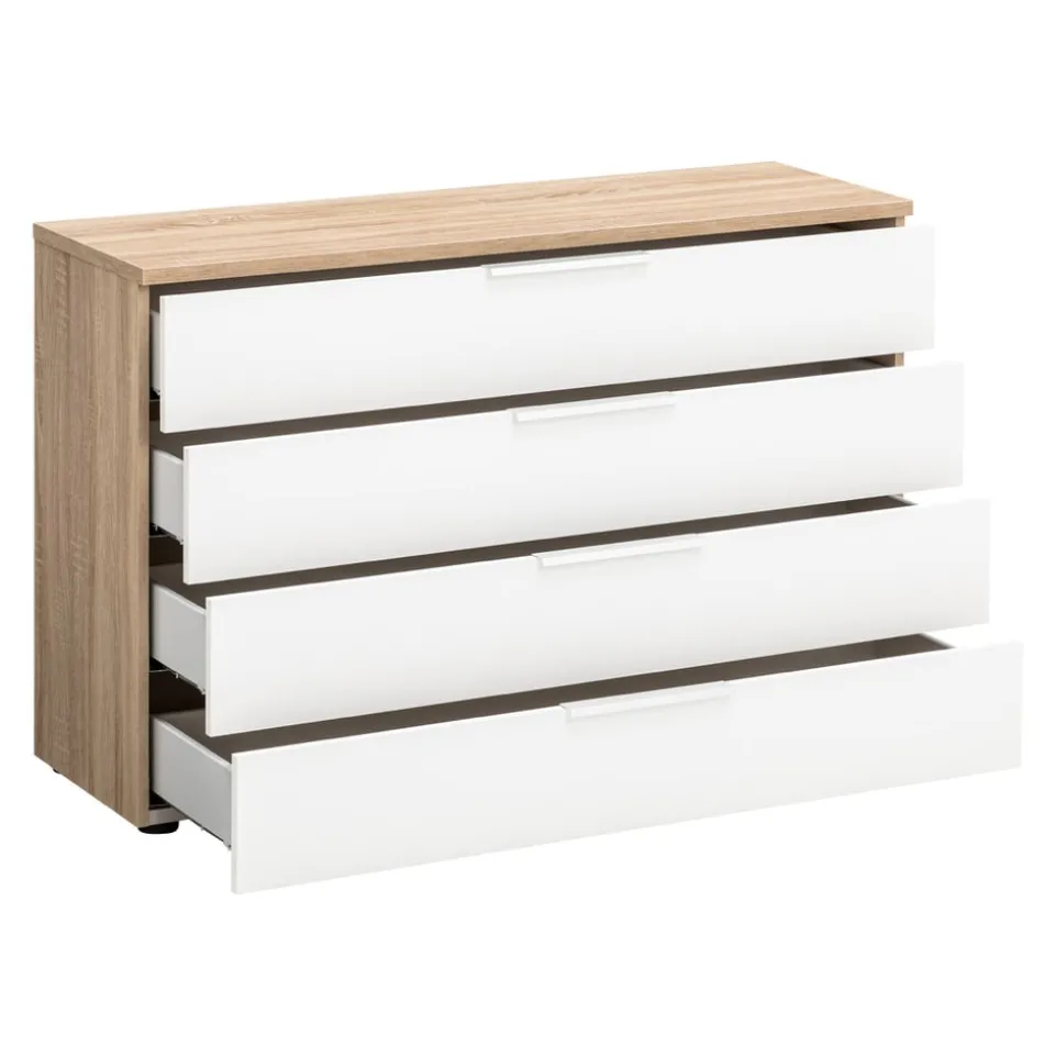 Die vier geräumigen Schubladen der Moderano Kommode System One bieten dir optimalen Stauraum für all deine Habseligkeiten. Gefertigt aus hochwertigem Holzwerkstoff, vereint dieses Möbelstück langlebige Qualität mit zeitlosem Design. Die klare Linienführung und die schlichte Eleganz machen die Kommode zu einem vielseitigen Begleiter in jedem Raum. Ob im Schlafzimmer, Flur oder Wohnzimmer, die Kommode fügt sich harmonisch in verschiedene Einrichtungsstile ein. Die durchdachte Konstruktion gewährleistet Stabilität und Benutzerfreundlichkeit. Mit der Kommode System One von Moderano schaffst du Ordnung und setzt zugleich stilvolle Akzente in deinem Zuhause.