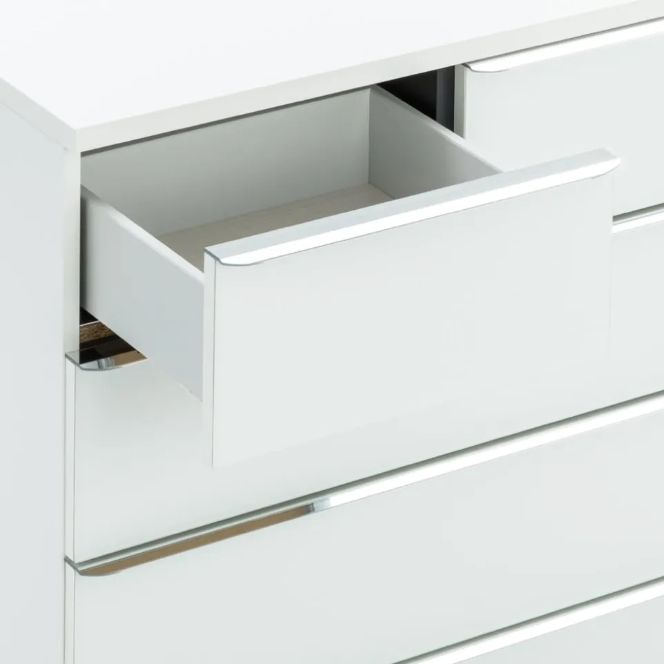Eleganz trifft Funktionalität: Die Moderano Kommode System One bietet mit ihren fünf Schubladen reichlich Stauraum für deine persönlichen Schätze. Der Korpus aus hochwertigem Holzwerkstoff und die Fronten aus edlem Glas verleihen deinem Raum ein modernes und stilvolles Ambiente. Diese Kommode ist nicht nur ein praktisches Möbelstück, sondern auch ein echter Blickfang in deinem Zuhause. Das Zusammenspiel der Materialien sorgt für Stabilität und eine ansprechende Optik. Mit der Kommode System One setzt du auf Qualität und Design, die deine Einrichtung perfekt ergänzen. Hol dir dieses zeitlose Möbelstück und schaffe Ordnung mit Stil.