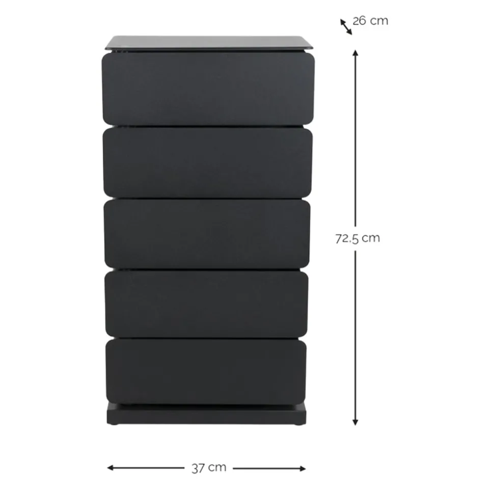 Mit der pulverbeschichteten Oberfläche bietet die Spinder Design Kommode TAFF eine elegante Kombination aus Funktionalität und Stil. Diese Kommode aus robustem Stahl ist nicht nur langlebig, sondern auch ein echter Blickfang in jedem Raum. Die fünf geräumigen Schubladen bieten dir ausreichend Stauraum für all deine Habseligkeiten. Ob im Schlafzimmer, Wohnzimmer oder Flur, die TAFF Kommode fügt sich harmonisch in jede Umgebung ein. Das moderne Design unterstreicht die hochwertige Verarbeitung und macht sie zu einem unverzichtbaren Element in deiner Einrichtung. Erlebe, wie Ordnung und Design auf stilvolle Weise miteinander verschmelzen.