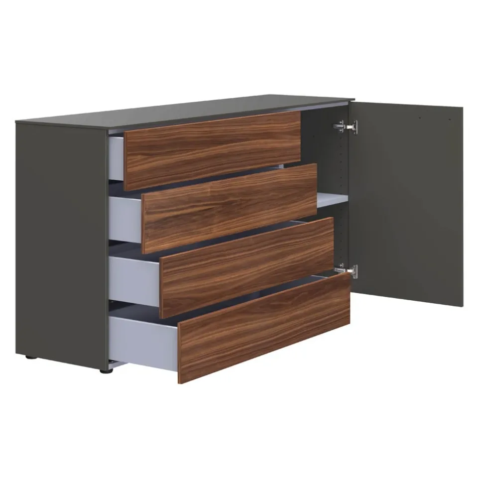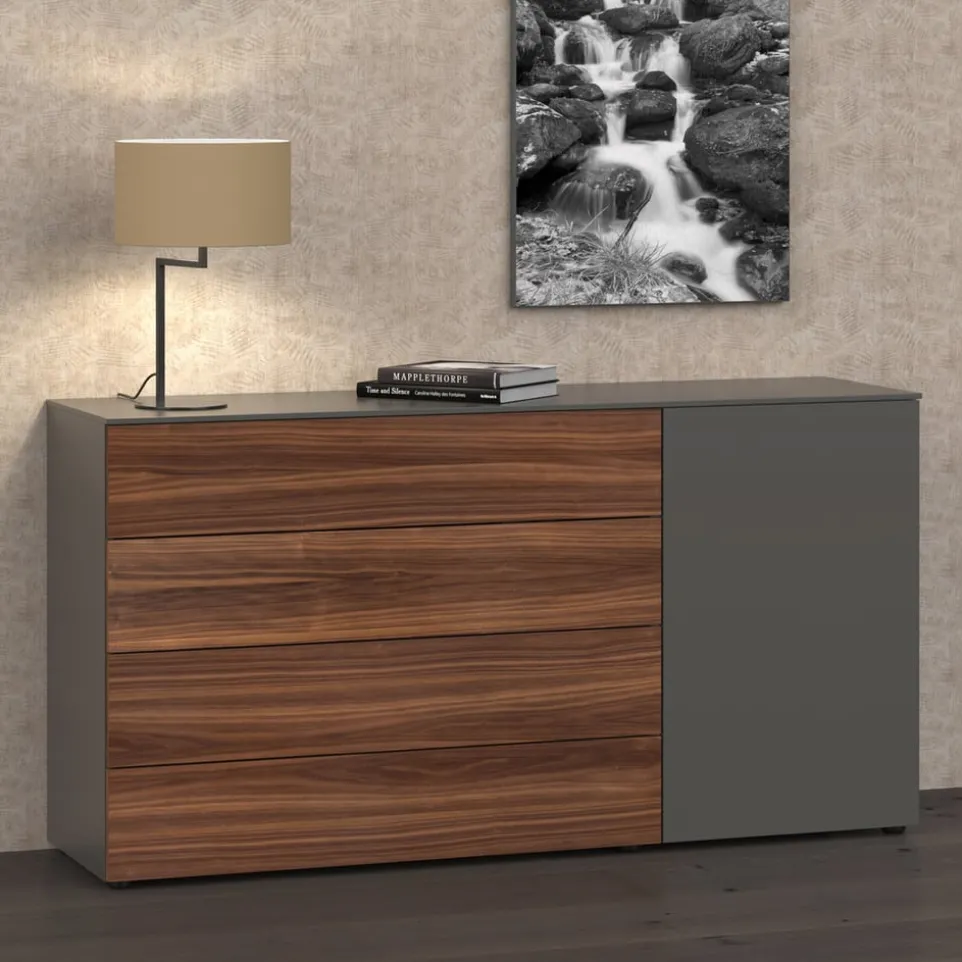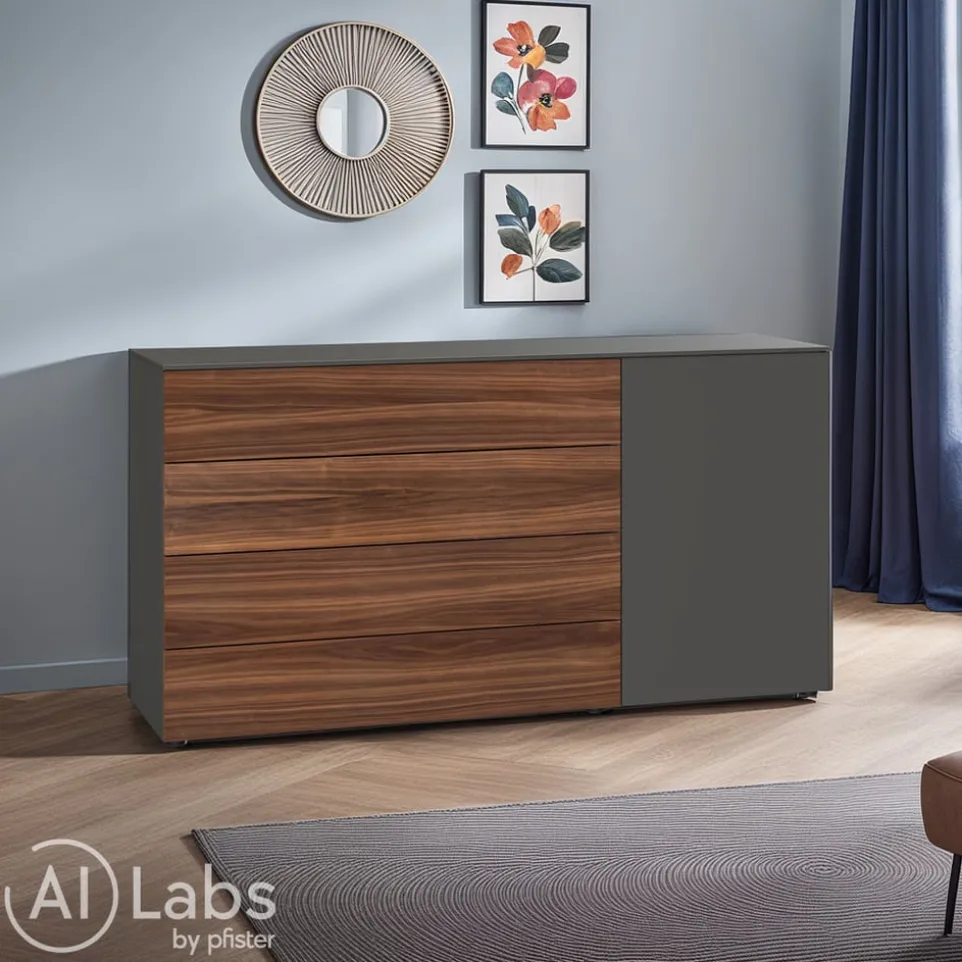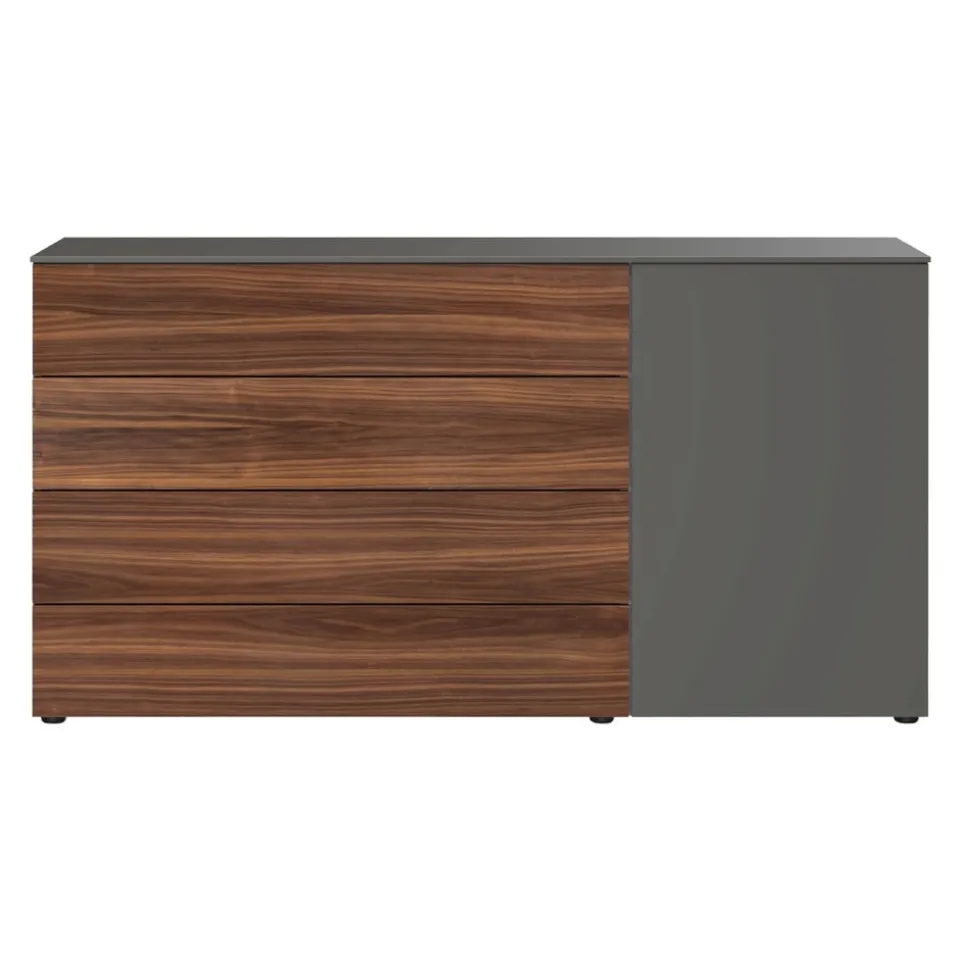 Dieser Schubladenschrank verleiht jedem Zuhause ein heimeliges Flair. Mit der Kommode entscheidest du dich für die ausgezeichnete Edition-Markenqualität. Das Möbel sorgt mit seinen vier Schubladen für Ordnung in deinen vier Wänden und kann auch optisch durch sein trendiges Design überzeugen. Der Korpus der Kommode hat einen grauen Bezug und verleiht ihr damit ein geschmackvolles Erscheinungsbild. Darüber hinaus trägt der Schubladenschrank das Siegel „Made in Switzerland“. Diese Kommode sorgt für bewundernde Blicke.