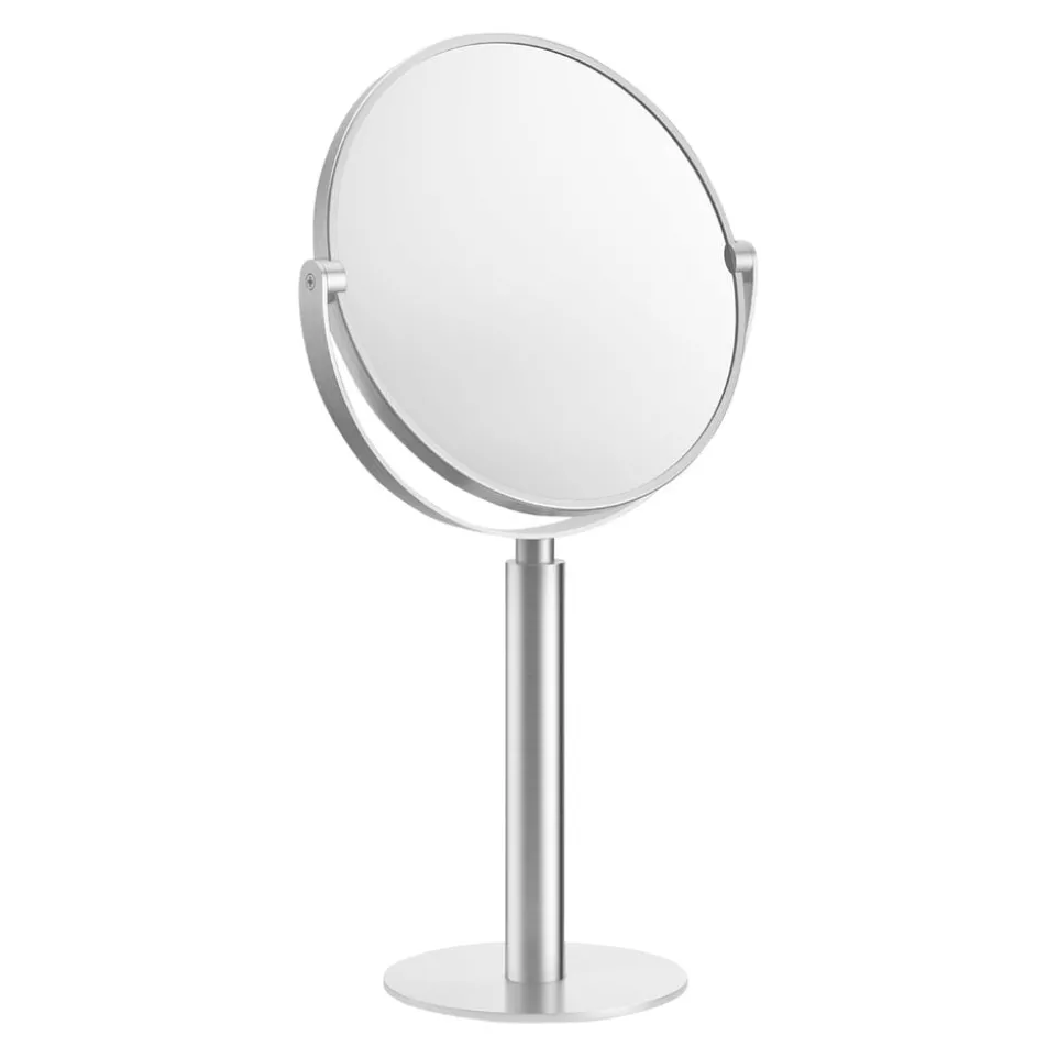 Edelstahl trifft auf Eleganz mit dem Kosmetikspiegel Felice von ZACK. Der FELICE Standspiegel ist ein vielseitiger Helfer im Badezimmer. Mit einem einfachen Handgriff kannst du zwischen einer 1-fachen und 3-fachen Vergrösserung wählen. Der Spiegel lässt sich stufenlos um 360° drehen, was dir einen optimalen Blickwinkel bietet. Der solide Fuss sorgt für einen sicheren Stand, während ein EVA-Pad auf der Unterseite empfindliche Oberflächen schützt. Die Spiegelfläche von 170 mm Durchmesser ermöglicht dir eine klare Sicht, und das gebürstete Oberflächenfinish verleiht dem Spiegel eine moderne Note.