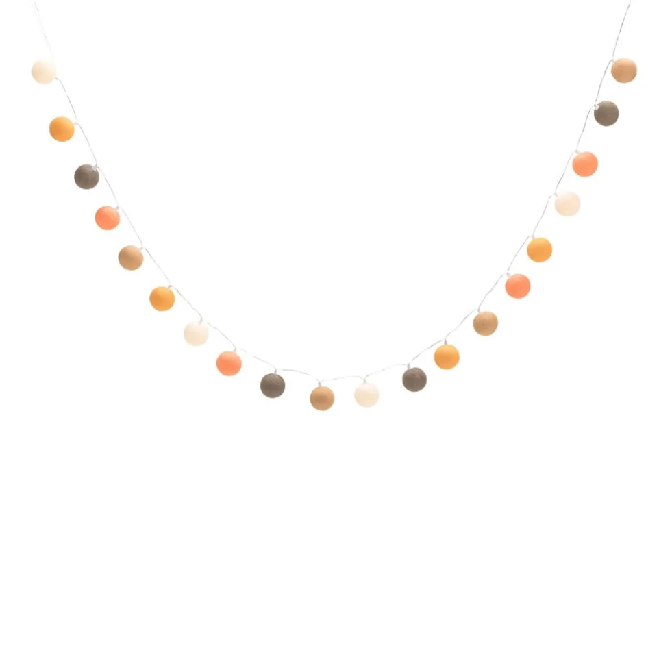 Die Lichterkette Hou von Lifetime bringt Gemütlichkeit in dein Zuhause. Handgefertigte Baumwollkugeln, die fair gehandelt sind, sorgen für eine warme Atmosphäre. Diese Lichterkette, die im Netzbetrieb funktioniert, ist mit fest verbauten LEDs ausgestattet und bietet dir eine langlebige und zuverlässige Beleuchtungslösung. Dank des CE-Zertifikats kannst du sicher sein, dass sie den europäischen Sicherheitsstandards entspricht. Ideal für den Innenbereich, vereint sie Nachhaltigkeit und Design in einem Produkt. Die hochwertigen Textilmaterialien verleihen deinem Raum einen Hauch von Eleganz und Behaglichkeit.