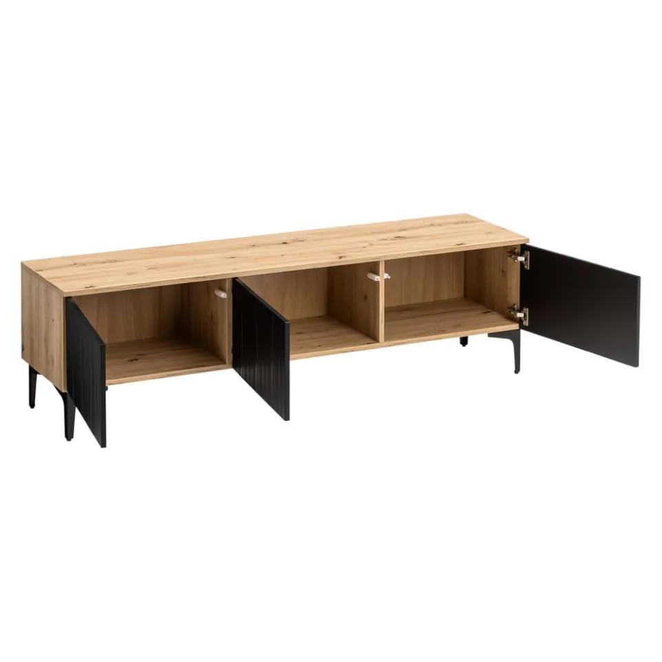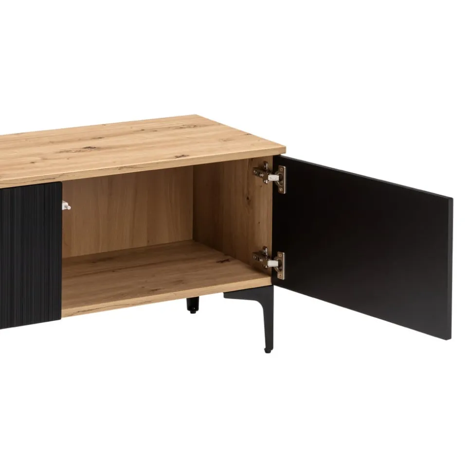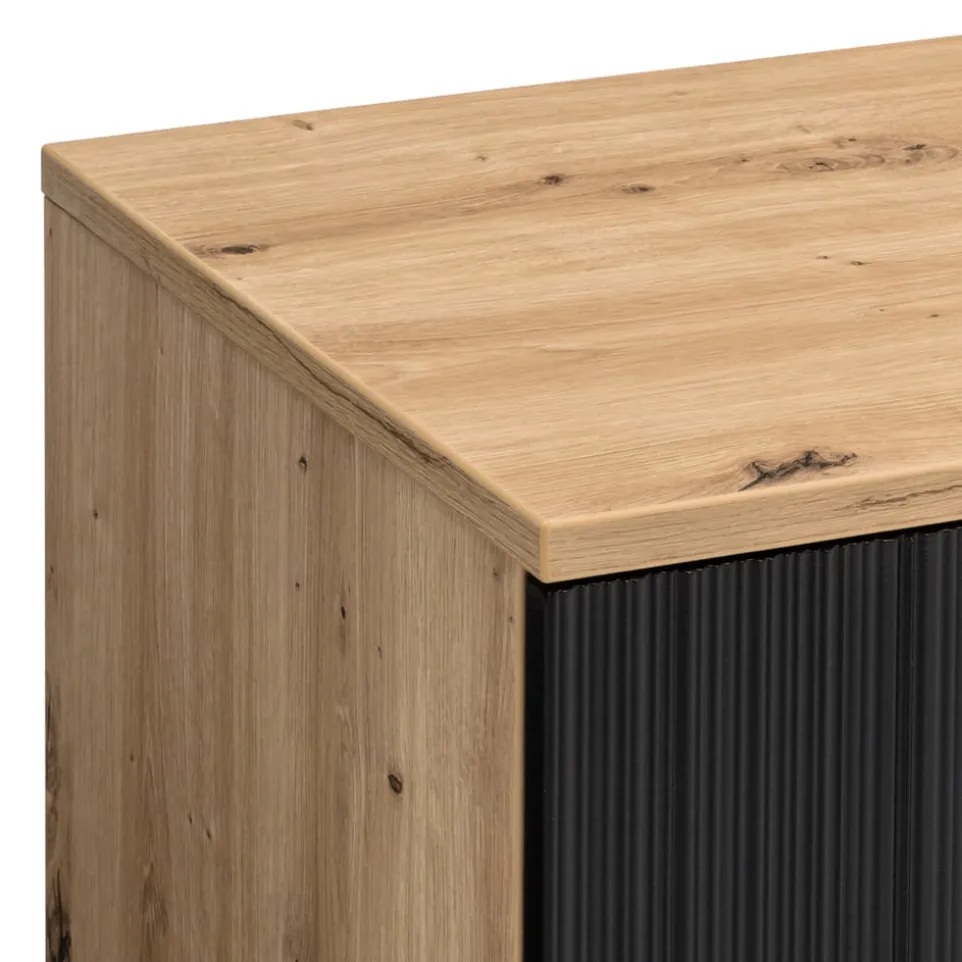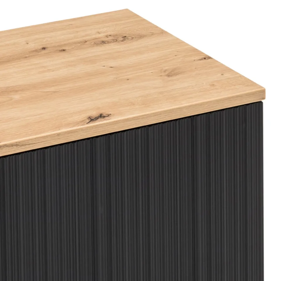 Mit drei Türen bietet das Lowboard Kleo von BYYU eine praktische Lösung für dein Wohnzimmer. Die Kombination aus Eichenholz und Holzwerkstoff verleiht dem Möbelstück eine robuste und zugleich stilvolle Erscheinung. Die Verwendung von Spanplatte zeugt von einer soliden Holzqualität, die Funktionalität und Langlebigkeit verspricht. Als Kastenmöbelart eignet sich das Lowboard ideal für eine Vielzahl von Anwendungen, sei es zur Aufbewahrung von Mediengeräten oder anderen Alltagsgegenständen. Die Front aus Holzwerkstoff rundet das Design ab und sorgt für ein harmonisches Gesamtbild. Ein durchdachtes Möbelstück, das deinen Wohnraum bereichert.