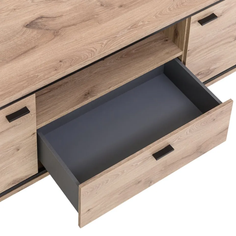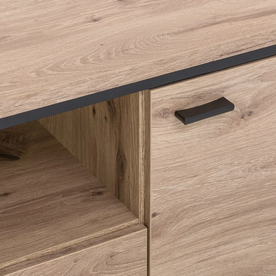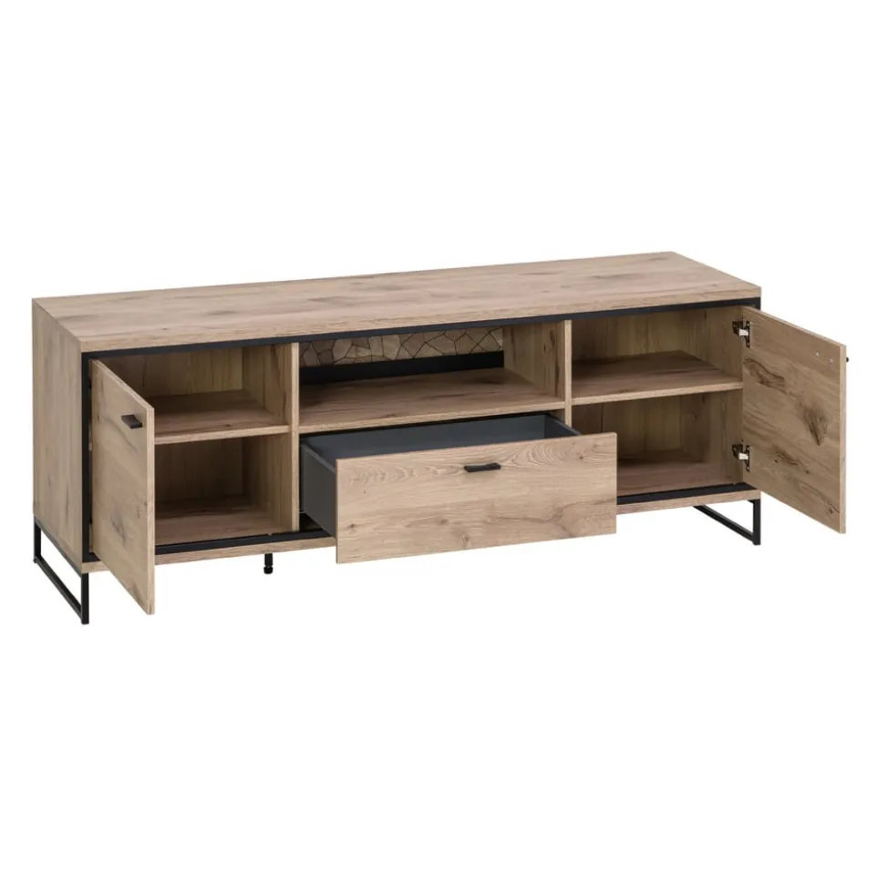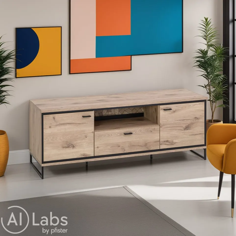 Das Soft-Close-System des Lowboard Ruben von Livetastic sorgt für ein lautloses und sanftes Schliessen der Schubladen. Dieses elegante Kastenmöbel besteht aus hochwertigem Holzwerkstoff und ist mit praktischen Kunststoffgleitern ausgestattet. Die stabile Kufenform der Beine verleiht dem Lowboard einen modernen Touch und sorgt für sicheren Stand. Mit einer Schublade bietet es ausreichend Stauraum für deine Mediengeräte und Zubehör. Das Lowboard Ruben ist die perfekte Ergänzung für dein Wohnzimmer und unterstreicht deinen individuellen Einrichtungsstil. Gönn dir dieses funktionale Möbelstück und geniesse den Komfort und die Eleganz in deinem Zuhause.