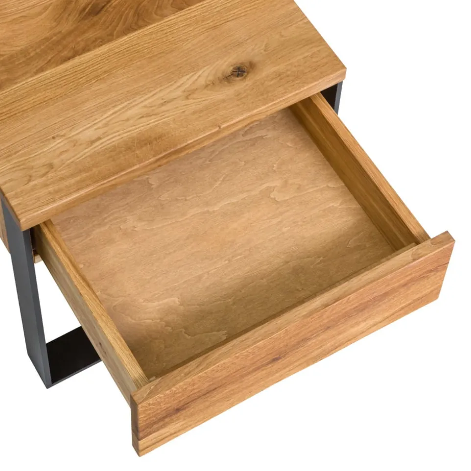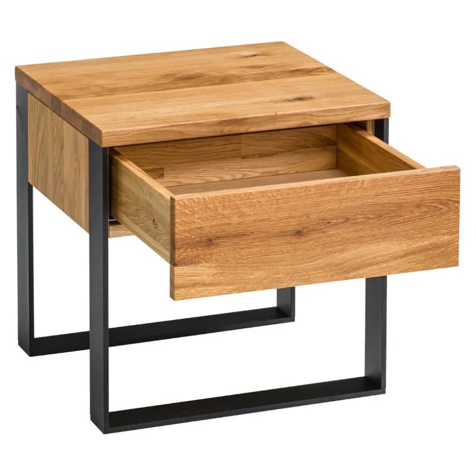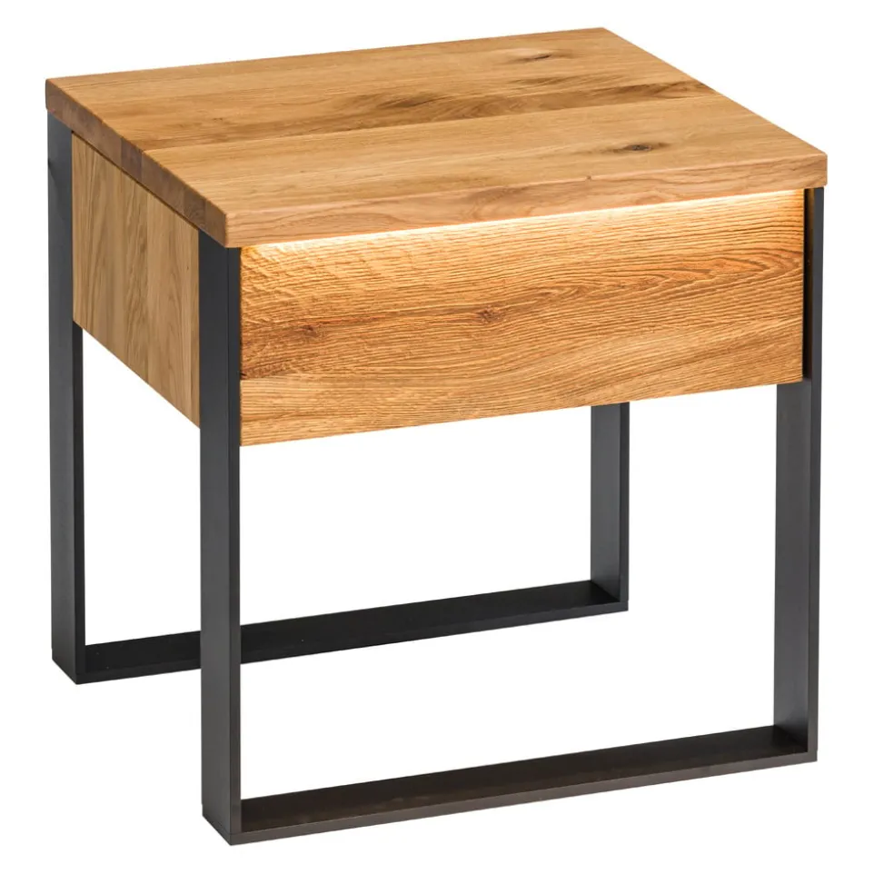 Massive Wildeiche trifft auf moderne LED-Beleuchtung: Der Nachttisch Boston_201 von edy&liv vereint traditionelle Handwerkskunst mit zeitgemässem Design. Die massive Holzqualität sorgt für Langlebigkeit und ein stabiles Standgefühl. Ein Highlight ist die integrierte LED-Beleuchtung, die für stimmungsvolles Licht in deinem Schlafzimmer sorgt. Der Nachttisch steht auf stilvollen Kufengestellen und bietet mit einer Schublade ausreichend Stauraum für deine Nachtutensilien. Der Boston_201 ist mehr als nur ein Möbelstück – er ist ein Statement für hochwertige Verarbeitung und modernes Wohnen. Hol dir ein Stück Natur und Design in dein Zuhause mit edy&liv.