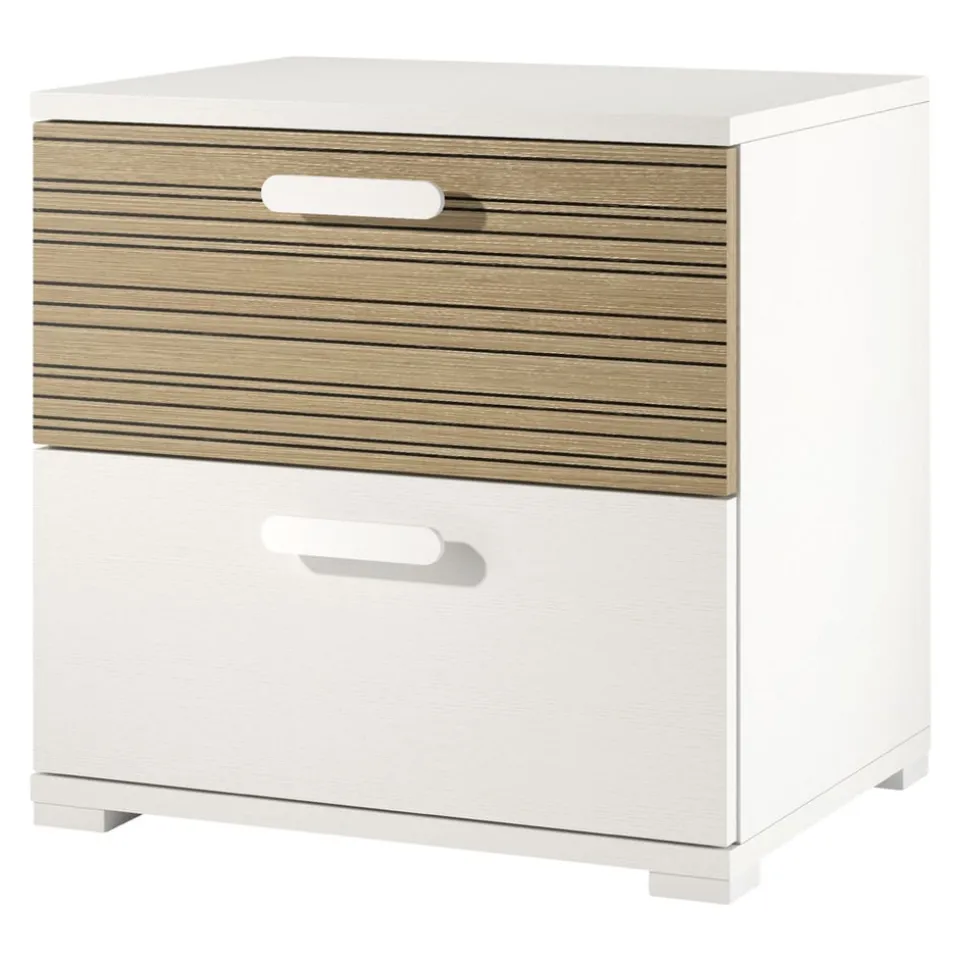 Zwei geräumige Schubladen bieten in dem Nachttisch Living von Sikelia ausreichend Platz für deine persönlichen Dinge. Der Nachttisch besteht aus hochwertigem Holzwerkstoff und verfügt über robuste Metallschienen, die für eine reibungslose Nutzung der Schubladen sorgen. Dank der Kunststoffgleiter lässt sich der Nachttisch leicht verschieben, ohne deinen Boden zu beschädigen. Die FSC®-Mix-Zertifizierung unterstreicht das Engagement für nachhaltige Materialien. Die Spanplatte als Basis sorgt für Stabilität und Langlebigkeit. Ein praktisches und stilvolles Möbelstück, das sich perfekt neben deinem Bett integriert und für Ordnung sorgt.