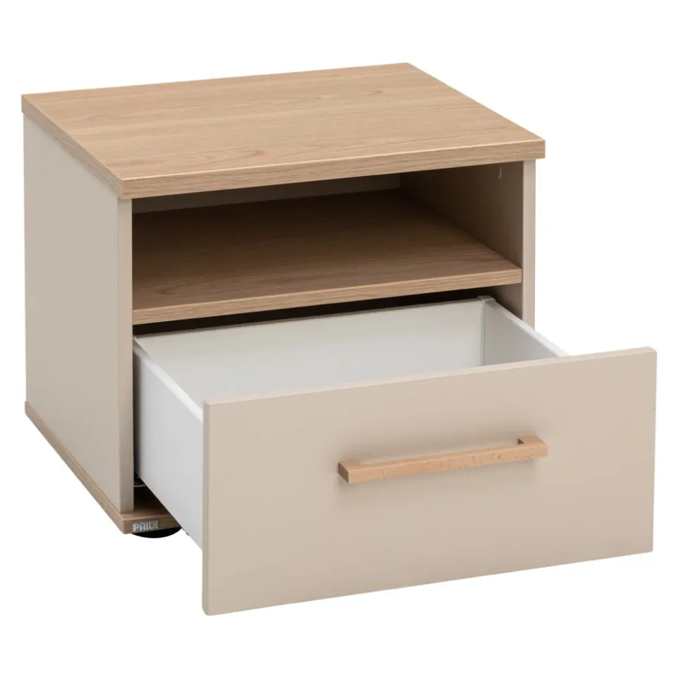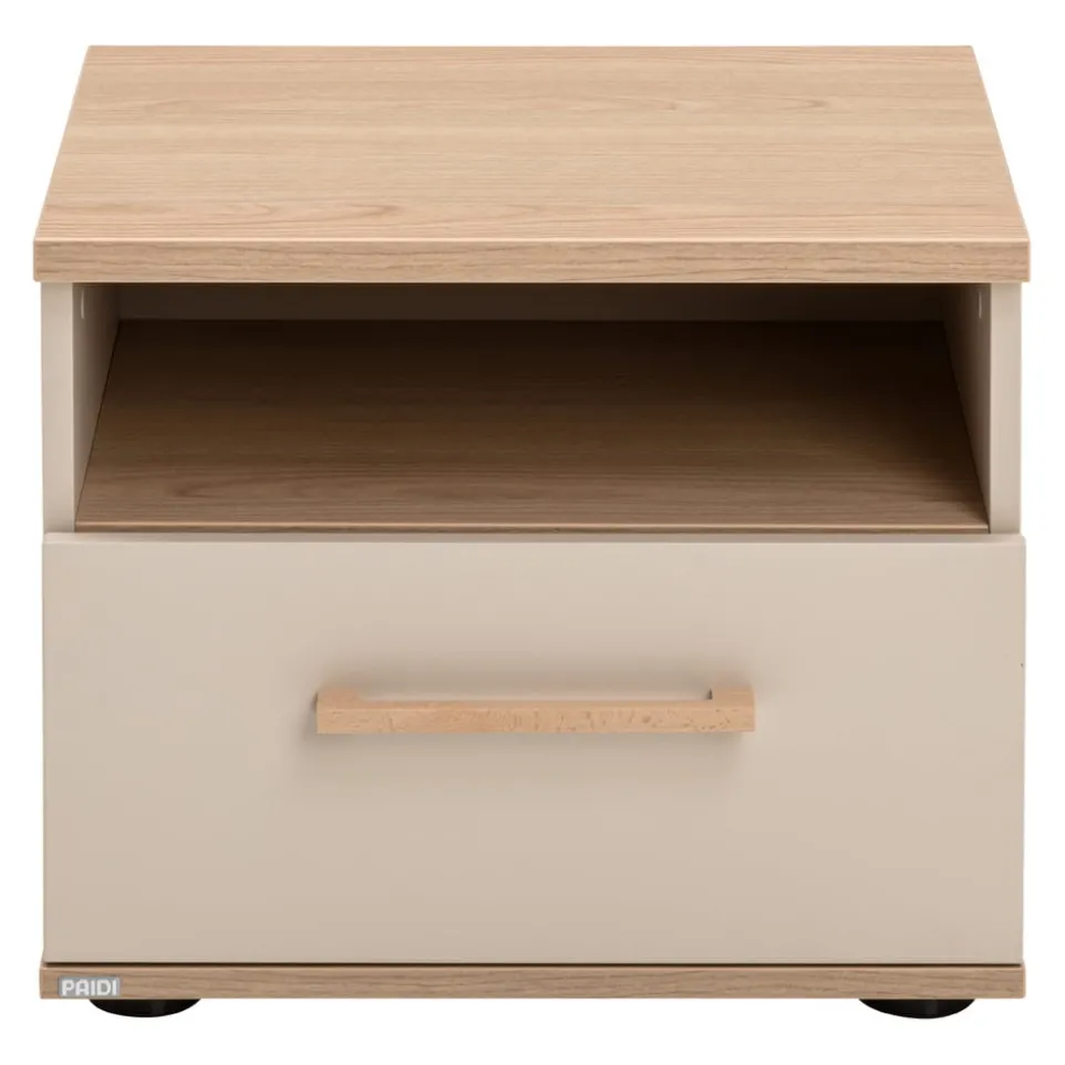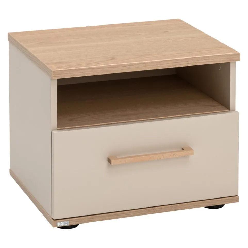 Ein stilvoller Begleiter für dein Schlafzimmer ist der Nachttisch Malio von PAIDI. Hergestellt aus hochwertigem Holzwerkstoff, bietet er nicht nur Stabilität, sondern auch eine warme, einladende Optik. Mit einer praktischen Schublade ausgestattet, sorgt Malio dafür, dass du all deine wichtigen Dinge griffbereit hast, ohne Unordnung zu verursachen. Die klare Linienführung und das durchdachte Design machen diesen Nachttisch zu einem zeitlosen Möbelstück, das sich in jedes Ambiente nahtlos einfügt. Erlebe die perfekte Kombination aus Funktionalität und Ästhetik, die deinen Schlafbereich bereichert und für Ordnung sorgt.