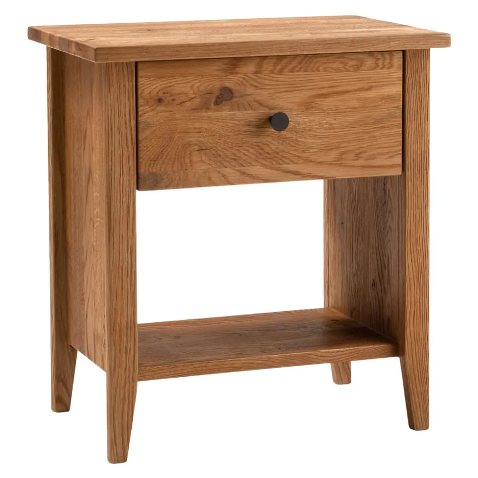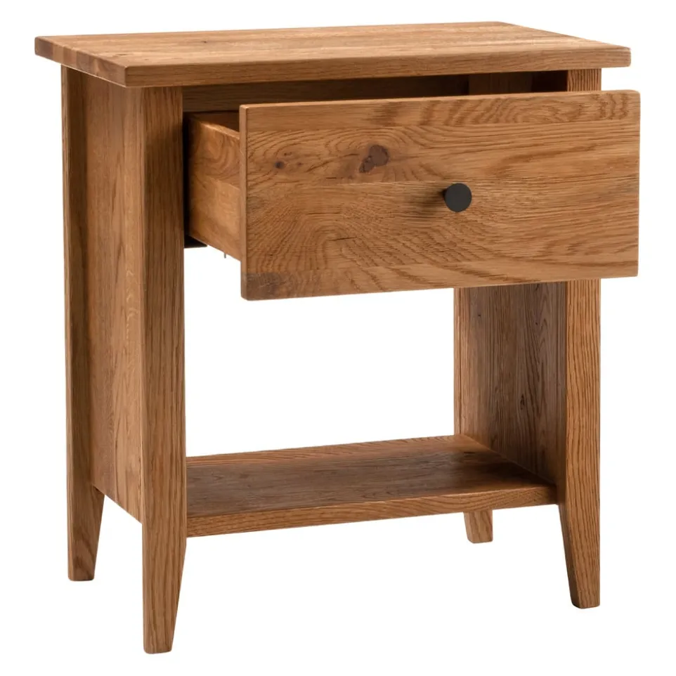 Mit dem Nachttisch Minas von HASENA holst du dir ein Stück Natur ins Schlafzimmer. Gefertigt aus massiver Wildeiche, besticht dieses Möbelstück durch seine hochwertige Verarbeitung und robustes Material. Die Holzoberfläche verleiht deinem Raum eine warme, einladende Atmosphäre. Der Nachttisch Minas bietet dir mit seinem Soft-Close-System in den Schubladen zusätzlichen Komfort, so dass ein sanftes Schliessen garantiert ist. Perfekt, um deine persönlichen Gegenstände ordentlich zu verstauen. Entdecke die Kombination aus Funktionalität und zeitlosem Design und bereichere dein Zuhause mit diesem stilvollen Nachttisch.