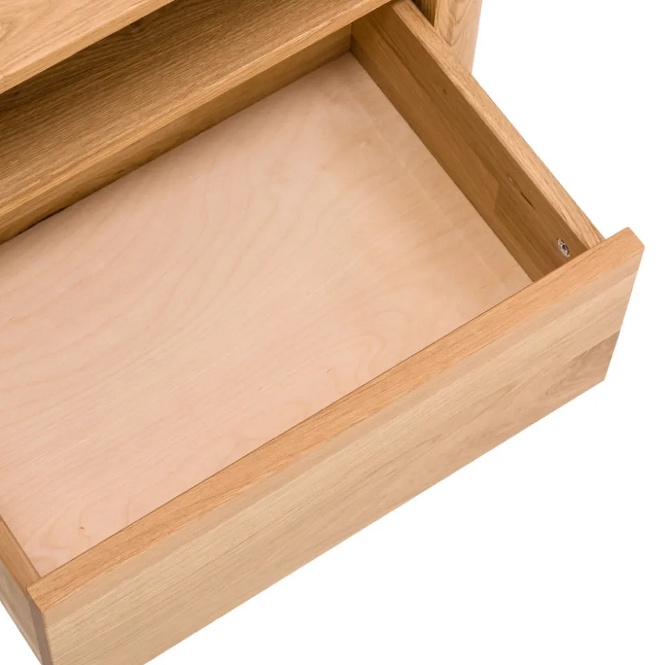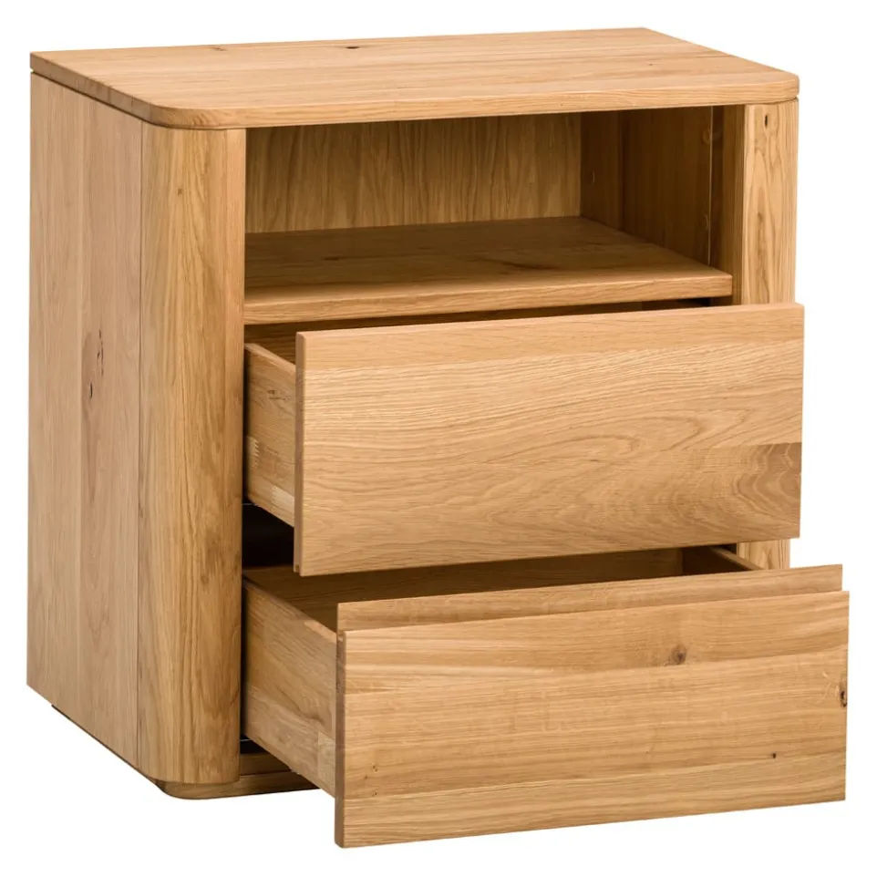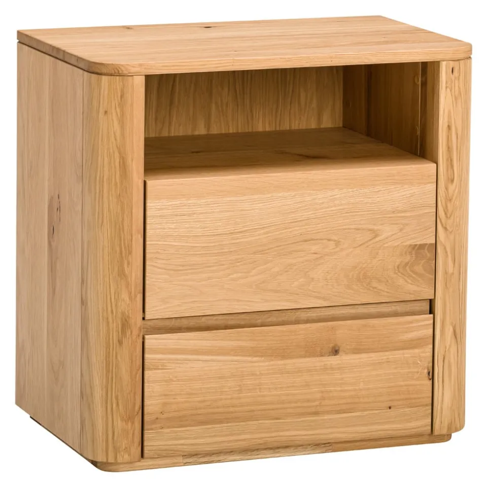 Der Nachttisch Silene von VALNATURA besticht durch die hochwertige Verarbeitung aus massiver Wildeiche. Mit seinen zwei geräumigen Schubladen bietet er dir ausreichend Platz für deine persönlichen Dinge. Das Soft-Close-System sorgt für ein sanftes und leises Schliessen der Schubladen. Dieser Nachttisch vereint Funktionalität und Stil und wird zum unverzichtbaren Begleiter in deinem Schlafzimmer. Dank des zeitlosen Designs fügt sich der Nachttisch Silene harmonisch in jedes Wohnambiente ein. Die exzellente Holzqualität von VALNATURA garantiert eine lange Lebensdauer und macht dieses Möbelstück zu einer lohnenden Investition.