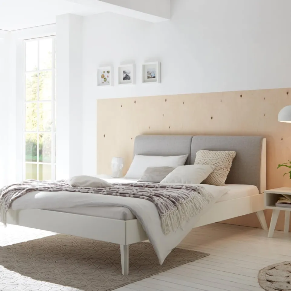 Nachttisch SIMONA aus Massivholz macht neben dem gleichnamigen Bett oder alleine stehend eine tolle Figur. Das filigrane Möbel kombiniert Eleganz mit dem angesagten Skandi-Look. Marke: Hasena.