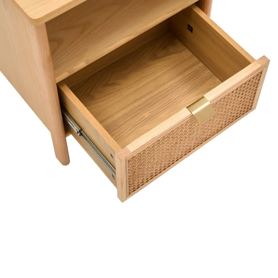Mit seinem eleganten Design und der hochwertigen Esche überzeugt der Nachttisch Soomaa von edy&liv auf Anhieb. Der Nachttisch aus robustem MDF-Holzwerkstoff bietet mit einer praktischen Schublade ausreichend Stauraum für deine persönlichen Gegenstände. Die natürliche Holzqualität sorgt für Langlebigkeit und ein stilvolles Ambiente in deinem Schlafzimmer. Der Nachttisch Soomaa ist ein funktionales Möbelstück, das sich harmonisch in jeden Raum einfügt. Mit edy&liv entscheidest du dich für Qualität und zeitloses Design.