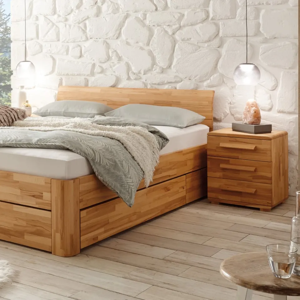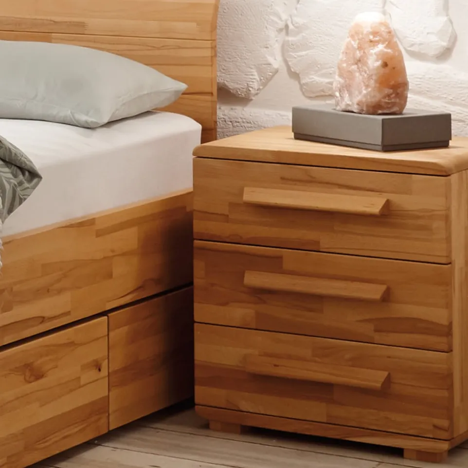 Die hochwertige Kernbuche und das massive Holz machen den Nachttisch Trigo zu einem besonderen Möbelstück. Mit seinen eleganten Linien und der natürlichen geölten Oberfläche fügt er sich perfekt in dein Schlafzimmer ein. Die zwei Schubladen bieten ausreichend Stauraum und sind mit Selbsteinzug und Dämpfung ausgestattet, was ein sanftes und geräuschloses Schliessen ermöglicht. Der Nachttisch Trigo von HASENA ist nicht nur funktional, sondern auch ein echter Blickfang. Durch die FSC®-Zertifizierung garantiert er zudem eine nachhaltige und umweltfreundliche Herstellung. Bereichere dein Zuhause mit diesem stilvollen und langlebigen Möbelstück.