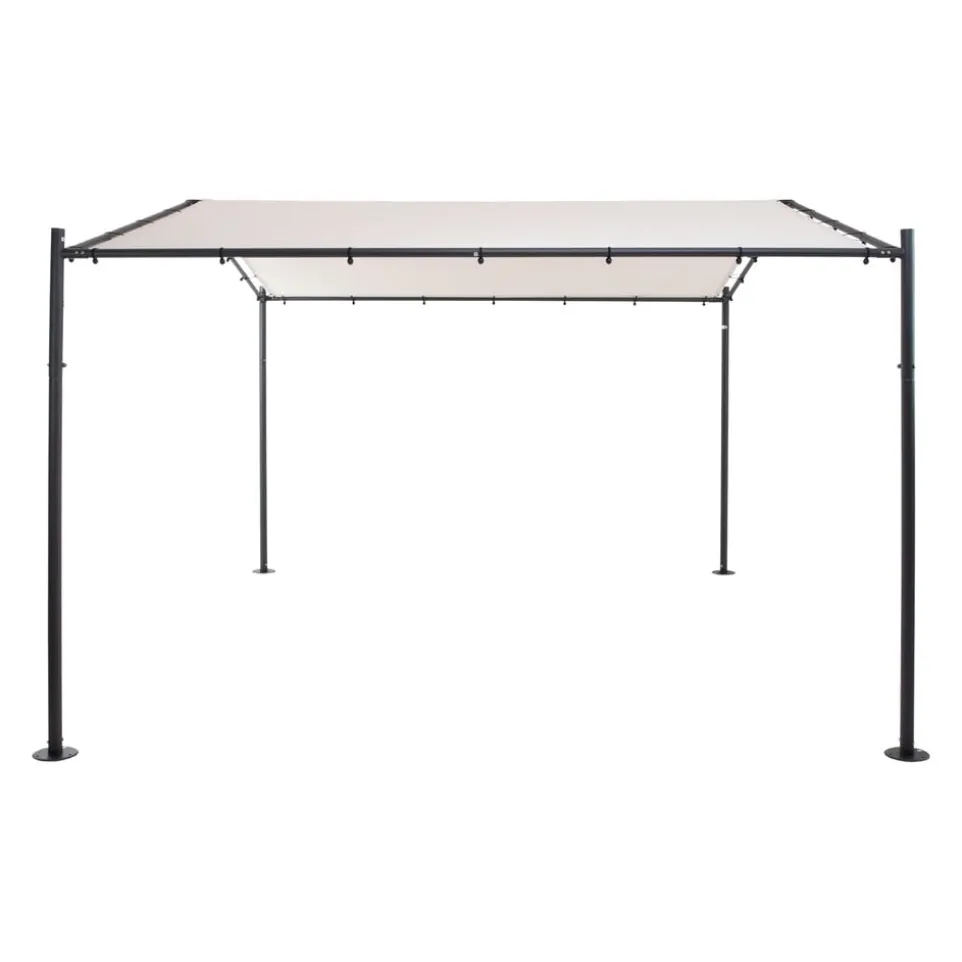 Schattenplatz gesucht? Mit Pavillon ROMA steht gemütlichen Stunden auf der Terrasse nichts mehr im Wege. Der dekorative Unterstand schützt vor UV-Strahlen und leichtem Regen. Dank seiner abfallenden Form fliesst das Wasser sofort ab. Der stylische Unterstand kann im Boden verankert werden und so das ganze Jahr über im Freien stehen. Es wird jedoch empfohlen, das Segeltuch im Winter an einem trockenen Ort zu lagern.