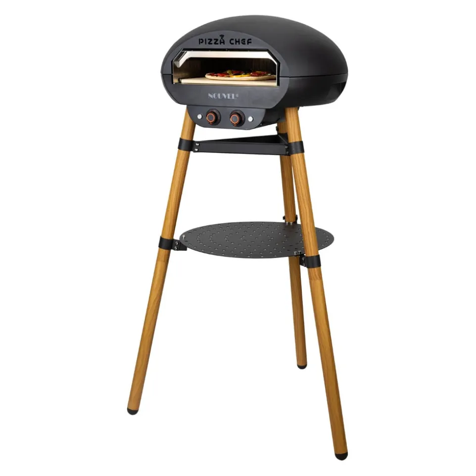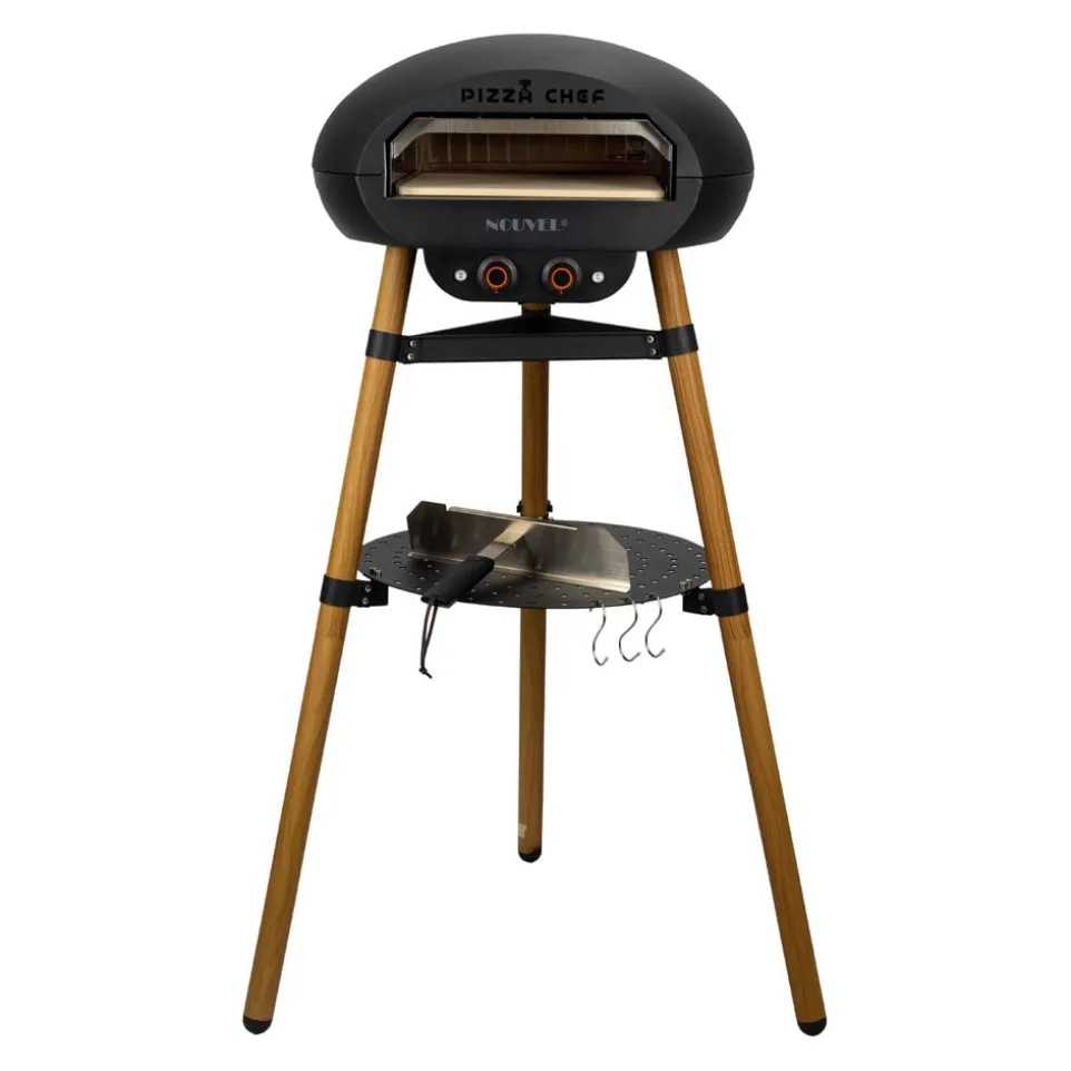 Mit seinen beleuchteten Bedienelementen ist der Pizzaofen Woody von Nouvel ein Highlight in jeder Küche. Die robuste Konstruktion aus Stahl sorgt für Langlebigkeit, während der praktische Aufhänge-Haken und das Tablar zusätzlichen Komfort bieten. Dank der Kabellänge von 180 cm lässt sich der Ofen flexibel aufstellen. Die separat steuerbare Unter- und Oberhitze ermöglicht dir eine perfekte Kontrolle über die Zubereitung deiner Pizza. Die Metallfüsse in Holzoptik verleihen dem Ofen einen eleganten Touch. Der Pizzaofen Woody ist elektrisch und wird über Netzbetrieb betrieben, was dir eine einfache Handhabung garantiert.