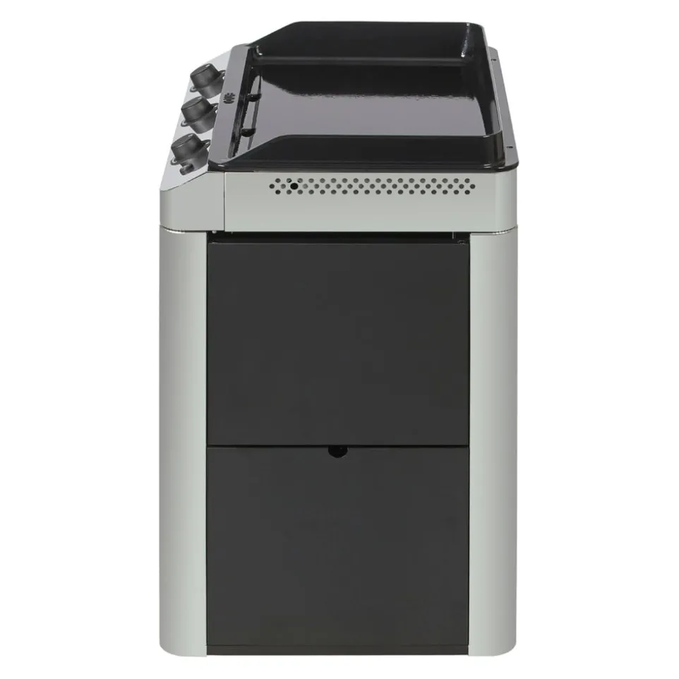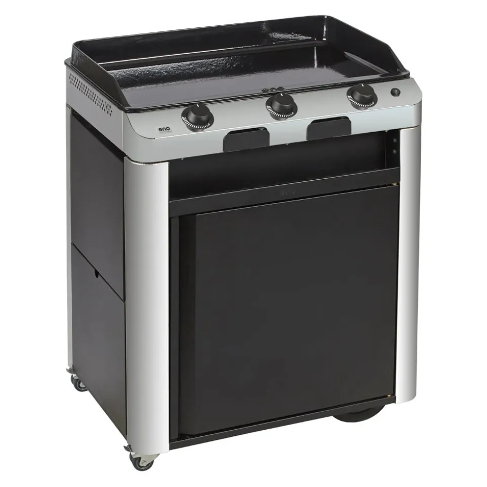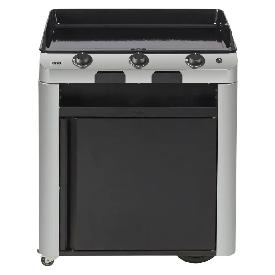 Die Plancha Fusion 75 bietet mit ihrer robusten Konstruktion aus Edelstahl und einem fahrbaren Untergestell maximale Flexibilität für deine Grillabenteuer. Dank der grossen geländegängigen Räder und der lenkbaren Vorderräder mit Bremsen lässt sich die Plancha mühelos bewegen und sicher platzieren. Die rechteckige Grillfläche bietet viel Platz zum Braten und Garen. Die Seitenablage sorgt für zusätzlichen Komfort beim Zubereiten köstlicher Mahlzeiten. Die zwei schwarzen Vorhänge schützen die Plancha von vorne und hinten und verleihen ihr ein elegantes Aussehen. Mit der Plancha von ENO Planchas wird dein Grillen auf ein neues Niveau gehoben.