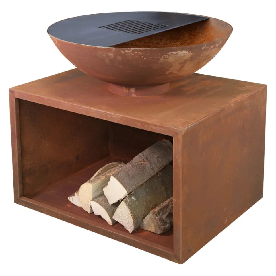 Der Plancha-Grill RUBIGO ermöglicht dir ein gesundheitsbewusstes Grillvergnügen: Ganz ohne Fett garst du auf der heissen Edelstahl-Grillplatte gesundes Gemüse, Pilze, Eier, Käse und mehr. Der eingearbeitete offene Rost bildet hingegen die ideale Grillgrundlage für Bratwürste und Steaks. So kreierst du ein leckeres Grillmenü ganz nach deinem Geschmack! Der Plancha-Grill RUBIGO ist aus pulverbeschichtetem Stahl gefertigt und besticht mit seinem trendigen Rost-Look. Er ist ebenso als Feuerstelle nutzbar und bringt ein integriertes Holzstaufach mit.