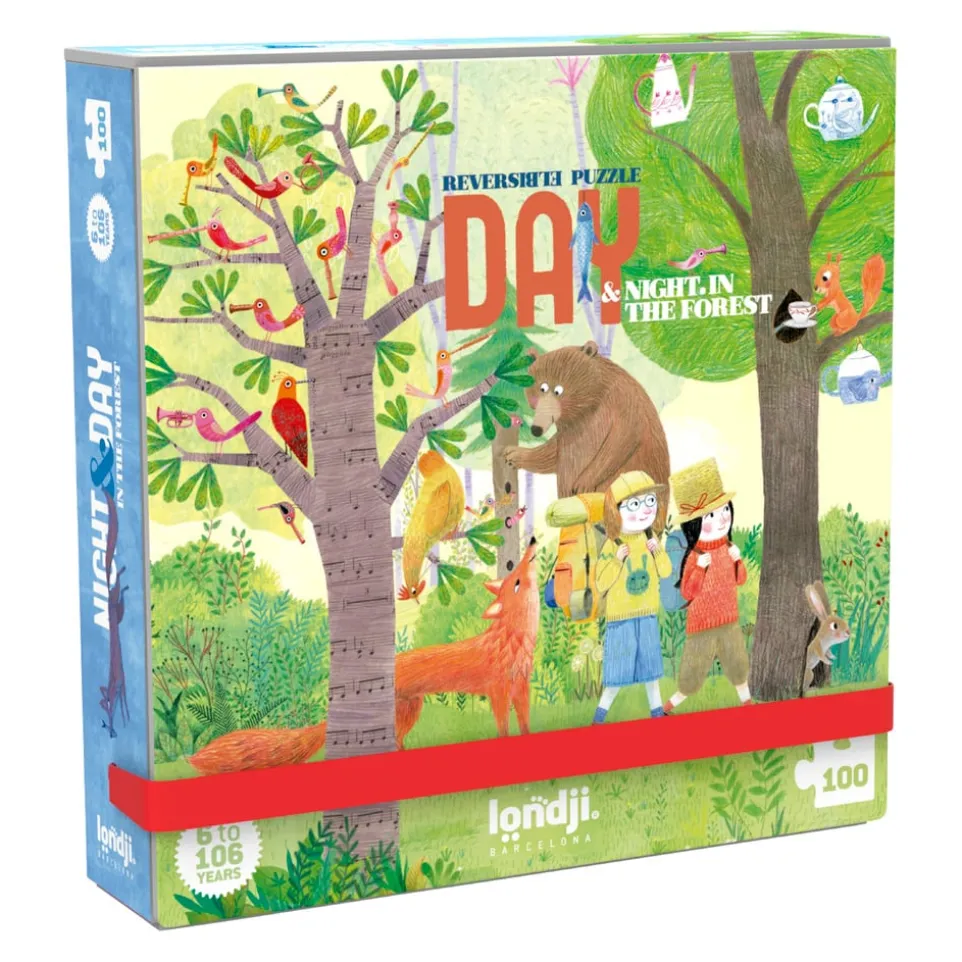 Das Kinderspiel für unterwegs: Puzzle FOREST DAY & NIGHT im Taschenformat nimmt Kinder ab 6 Jahren mit in einen Märchenwald. Das 100-teilige Puzzle ist beidseitig spielbar. Die eine Seite offenbart, was die quirligen Waldbewohner tagsüber tun. Die andere Seite zeigt, was nachts im Zauberwald passiert. Das Puzzle kommt in einer stabilen Box und ist ideal, um Kinder auf Reisen bei Laune zu halten. Nicht geeignet für Kinder unter 36 Monaten. Enthält kleine Teile, die verschluckt oder eingeatmet werden können.