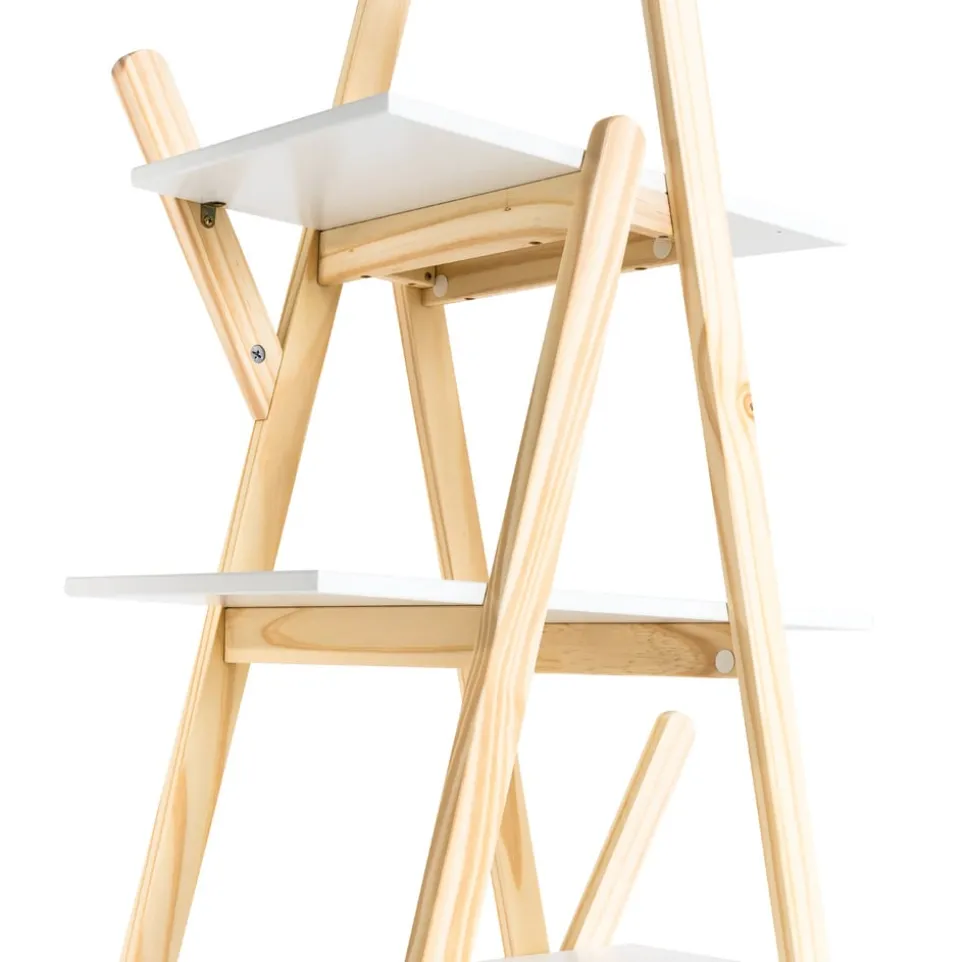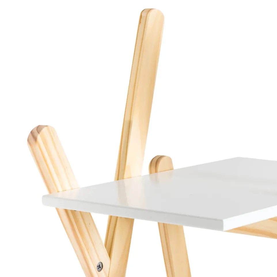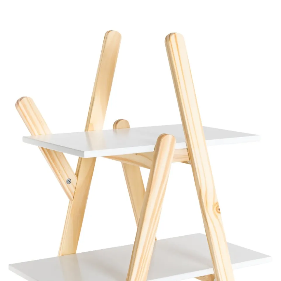 Das Regal KIDDY ist mit seiner verspielten Leiterform alles andere als steif. Für Ordnung sorgen hingegen die 4 Tablare. Ein Eyecatcher ist die Kombination der weissen Tablare mit den Füssen aus Pinienmassivholz. So geht Design im Kinderzimmer!