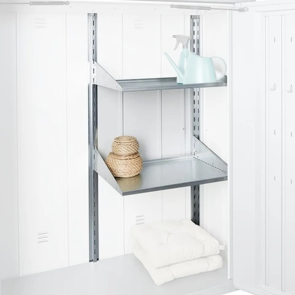 Verleihe deinem Gartenschrank Romeo Gr. M und L zusätzlichen Stauraum mit diesem hochwertigen Regalboden-Set von Biohort. Die zwei robusten Böden aus Stahl bieten dir die ideale Lösung, um Ordnung und Übersichtlichkeit in deinem Gartenschrank zu schaffen. Bitte beachte, dass die Regalsteher zur Montage nicht im Lieferumfang enthalten sind. Das Regalboden-Set Romeo Gr.M-L ist perfekt auf die Masse der Gartenschränke Romeo Gr. M und L abgestimmt und garantiert eine einfache Integration in dein bestehendes System. Investiere in langlebige Qualität und verbessere die Funktionalität deines Gartenschranks mit diesem praktischen Set.Bitte beachten Sie, dass bei einer Heimlieferung ohne Montageservice die Lieferung lediglich bis zur Bordsteinkante erfolgt.