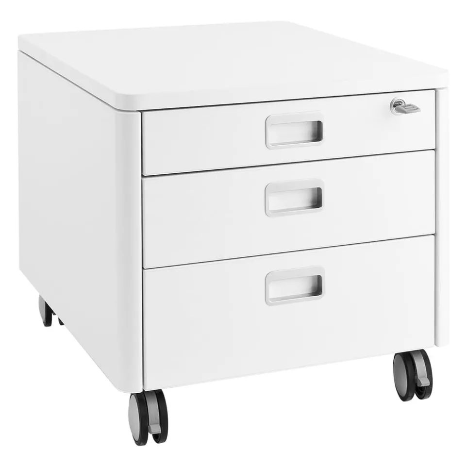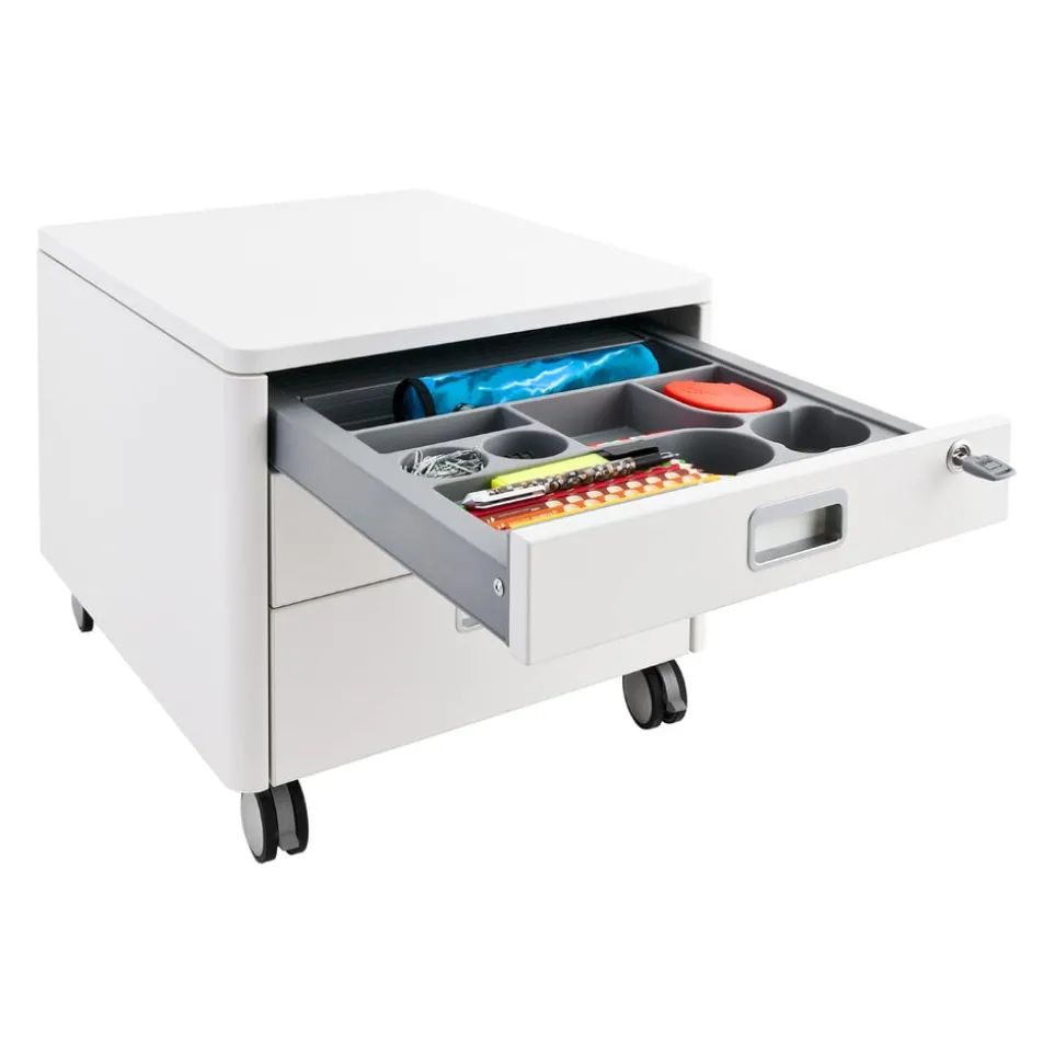 In Container Cubic CHAMPION mit zwei Schubladen (DIN A3) und einer abschliessbarenMaterialschublade (alle mit automatischem Selbsteinzug) sind Hefte, Ordner, Bücher und mehr verstaubar. Ein Geheimfach im hinteren Bereich der Materialschublade hütet sogar Geheimnisse. Der Container steht auf vier Rollen, zwei davon feststellbar. Mit dem optionalen Pad wandelt sich der Cubic Container kurzerhand zu einem mobilen Hocker. Auf 4 Rollen, 2 davon feststellbar, Schubladen bis 2,5kg, Materialschublade bis 1kg belastbar.