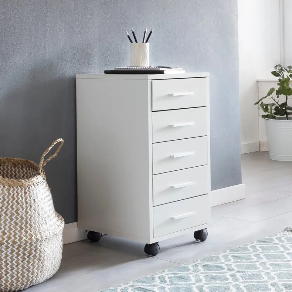 Der Rollcontainer Modern von MID.YOU überzeugt durch seine fünf geräumigen Schubladen, die dir viel Platz für deine wichtigen Unterlagen bieten. Hergestellt aus robustem Holz, fügt sich dieses Möbelstück nahtlos in jedes moderne Büro ein. Dank seiner Rollen kannst du den Container flexibel an den gewünschten Ort verschieben. Das zeitlose Design macht ihn zu einem echten Blickfang, der Funktionalität und Stil perfekt kombiniert. Egal ob im Homeoffice oder im professionellen Arbeitsumfeld, dieser Rollcontainer ist die ideale Lösung, um Ordnung zu schaffen und gleichzeitig eine stilvolle Note zu setzen.