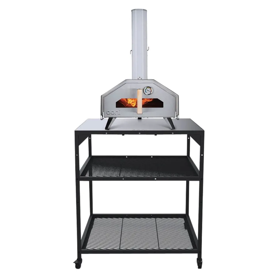 Dieser Rollwagen mit feststellbaren Rädern ist die perfekte Basis für Ihren tragbaren Pizzaofen der Marke Ooni. Die Arbeitsfläche aus Edelstahl ist genug gross für alle Pizzaofen-Modelle von Ooni. Eine Auswahl finden Sie in unserem Online-Sortiment. Die integrierten Haken und höhenverstellbaren Einlegeböden bieten Platz für Pizzaschieber und weiteres Zubehör. In verschiedenen Grössen erhältlich.