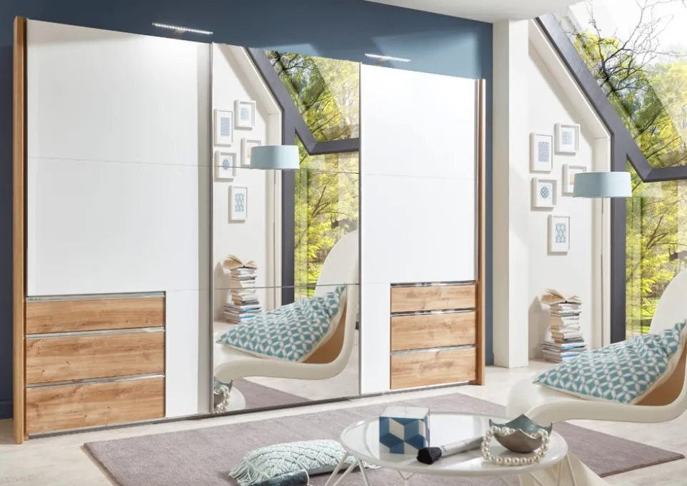 Der Schiebetürschrank Level36 beeindruckt durch seine praktische Aufteilung mit drei Türen und sechs Schubladen. Hergestellt aus hochwertigem Holzwerkstoff und Flachpressplatte, bietet dieser Schrank eine robuste und langlebige Lösung für deinen Stauraumbedarf. Die drei Schiebetüren ermöglichen einen einfachen Zugang zu deinem Hab und Gut, während die sechs Schubladen zusätzlichen Platz für kleinere Gegenstände bieten. Der Schiebetürschrank Level36 ist die ideale Wahl für ein ordentliches und stilvolles Zuhause. Die solide Bauweise und das durchdachte Design machen diesen Schrank zu einem unverzichtbaren Möbelstück in deinem Wohnraum.