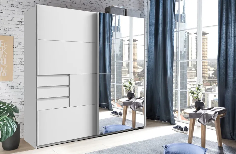 Der Schiebetürschrank Oldenburg von MID.YOU beeindruckt mit seiner durchdachten Aufteilung. Zwei Türen und drei geräumige Schubladen bieten reichlich Stauraum für Kleidung und Accessoires. Ein besonderes Highlight ist die integrierte Kleiderstange, die das Aufhängen von Jacken und Mänteln erleichtert. Gefertigt aus hochwertigem Holzwerkstoff, überzeugt der Schrank durch seine Stabilität und Langlebigkeit. Das schlichte und dennoch elegante Design fügt sich nahtlos in jedes Schlafzimmer ein. Mit dem Schiebetürschrank Oldenburg gestaltest du deinen Raum praktisch und stilvoll zugleich. Ideal für alle, die Wert auf Ordnung und ansprechendes Design legen.