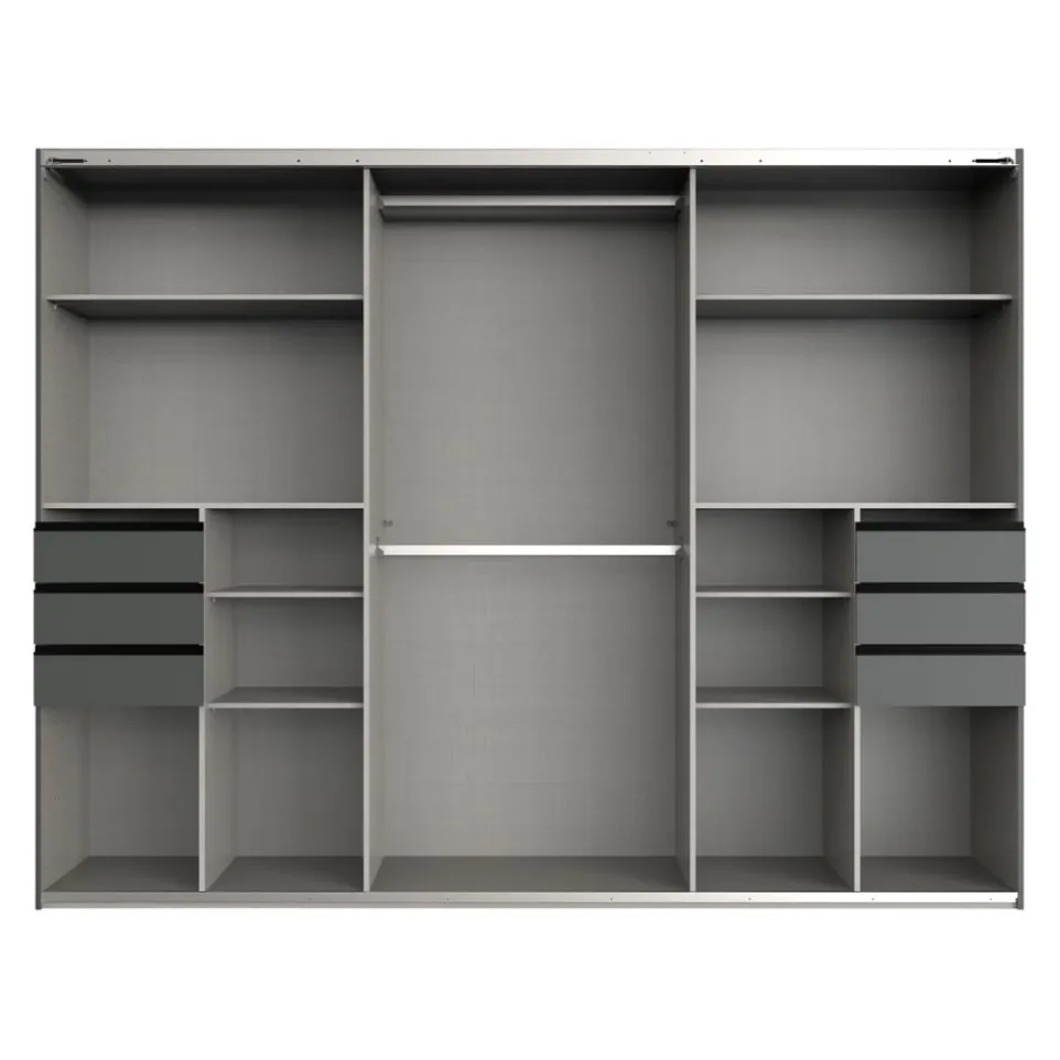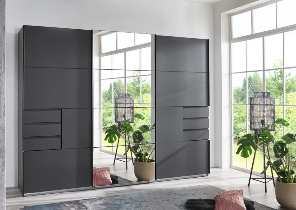 Mit drei Schiebetüren und sechs geräumigen Schubladen bietet der Schiebetürschrank Saigon von MID.YOU eine optimale Lösung für deine Aufbewahrungsbedürfnisse. Das hochwertige Holzwerkstoff-Material aus Flachpressplatte garantiert Langlebigkeit und Stabilität. Dank der cleveren Raumaufteilung mit drei Abteilen findest du für jedes Kleidungsstück den richtigen Platz. Die Kombination aus Funktionalität und modernem Design macht diesen Schrank zum idealen Möbelstück für jedes Schlafzimmer. Organisiere deine Kleidung stilvoll und effizient mit dem Schiebetürschrank Saigon.