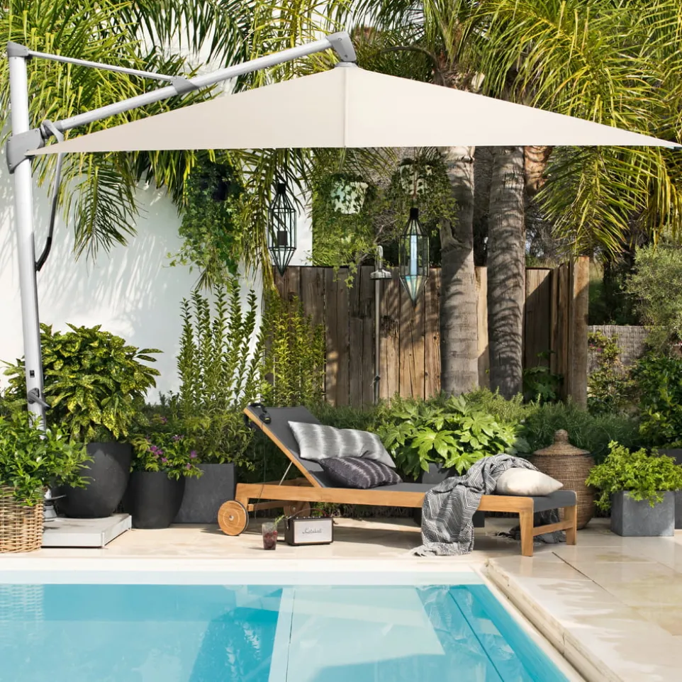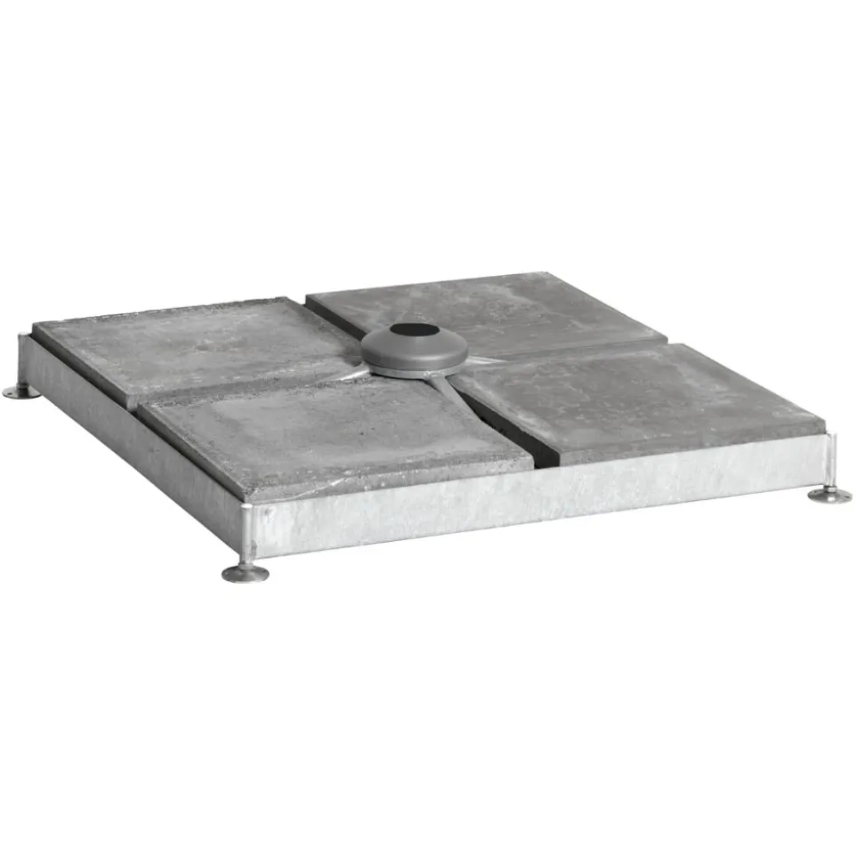 Passender Sockel zum Freiarmschirm von SOMBRANO. Aus Stahl. Die Betonplatten müssen separat bestellt werden (Artikelnummer 15973). Bitte beachten Sie: Falls Sie diesen Sockel zum Freiarmschirm PENDALEX oder SUNWING kombinieren, benötigen Sie zusätzlich das Standrohr mit der Artikelnummer 16671.