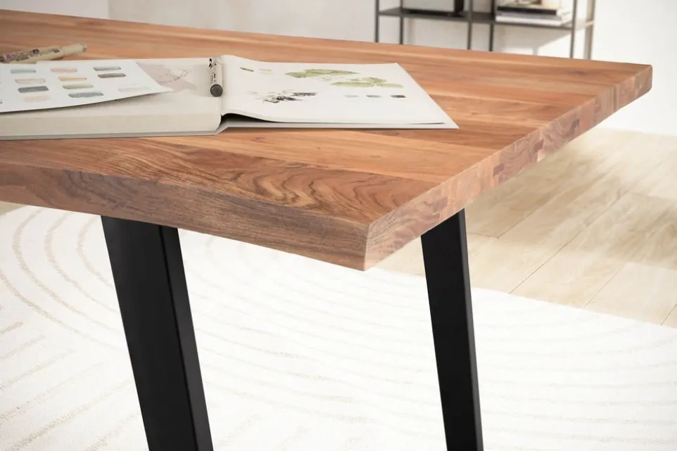 Einzigartig und charaktervoll, der Schreibtisch Akazie von MID.YOU überzeugt mit seiner massiven Holzqualität. Die rechteckige Tischplatte aus Akazienholz verleiht deinem Arbeitsbereich eine natürliche und zugleich elegante Note. Die Baumkante sorgt für ein unverwechselbares Design, das in jedem Raum zum Blickfang wird. Stabilität erhält der Tisch durch seine robusten U-Beine, die dem Möbelstück einen modernen Touch verleihen. Ideal für dein Homeoffice, bietet der Computertisch ausreichend Platz für kreative Ideen und produktives Arbeiten. Eine harmonische Verbindung von Funktionalität und Stil – perfekt für deinen täglichen Einsatz.