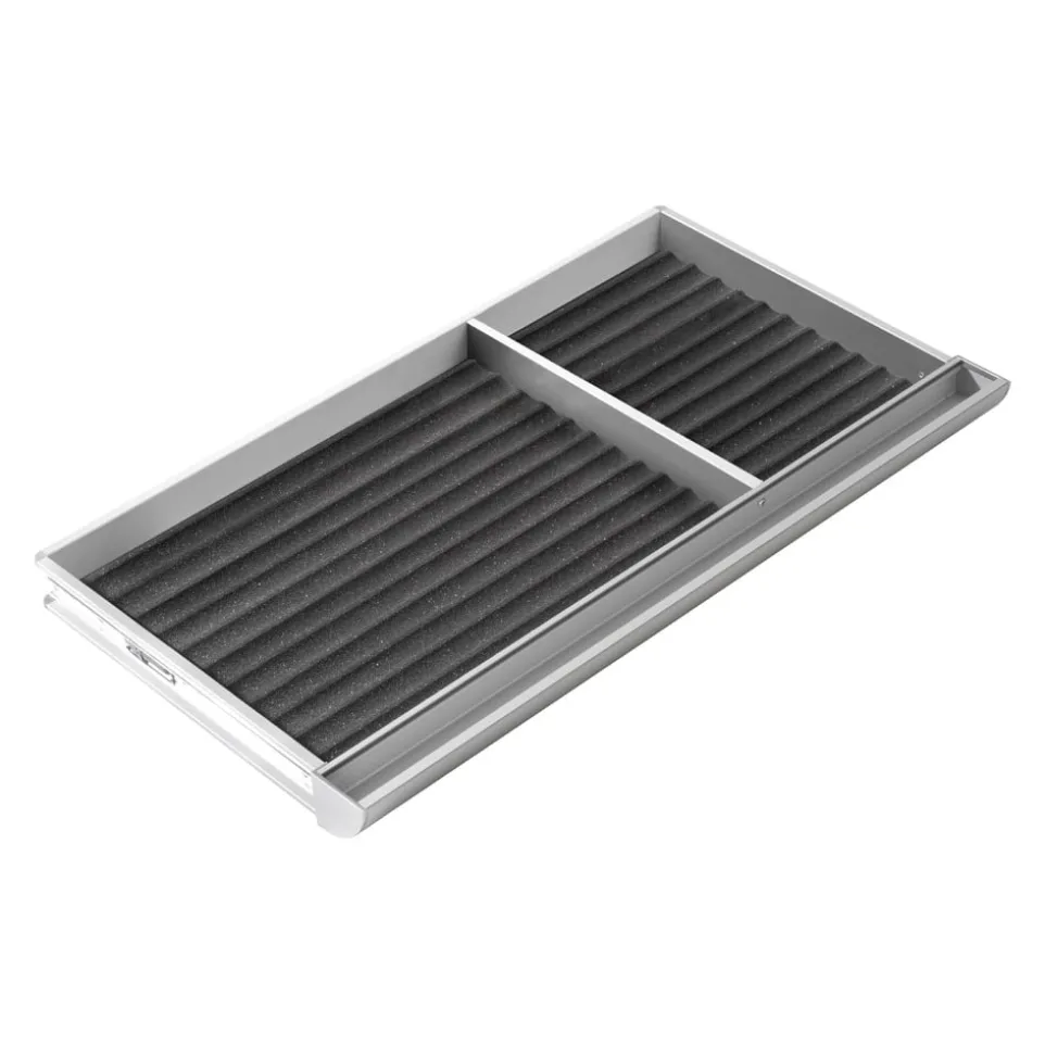Die praktische Riesenschublade kann nachträglich in den CHAMPION COMPACT Schreibtisch eingebaut werden. Sie ist durch einen Zwischensteg in zwei Fächer unterteilt. Mit Vollauszug und Schaumstoffeinlagen. Die passende Schubladenabdeckung ist separat erhältlich. Belastbar bis 6kg.